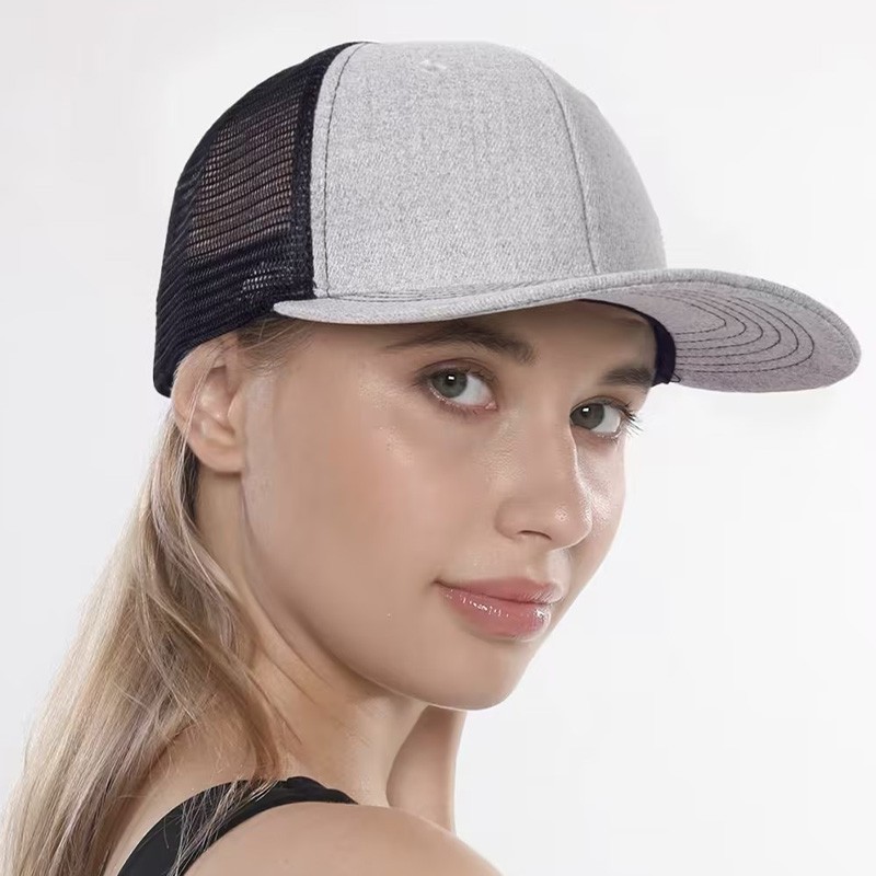 Mesh Trucker Hat Flat Brim Visor Snapback Adjustable Baseball Cap
