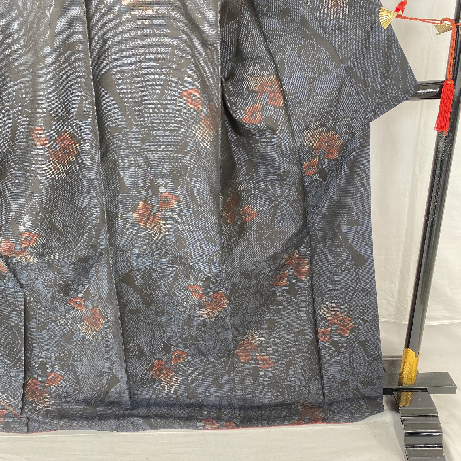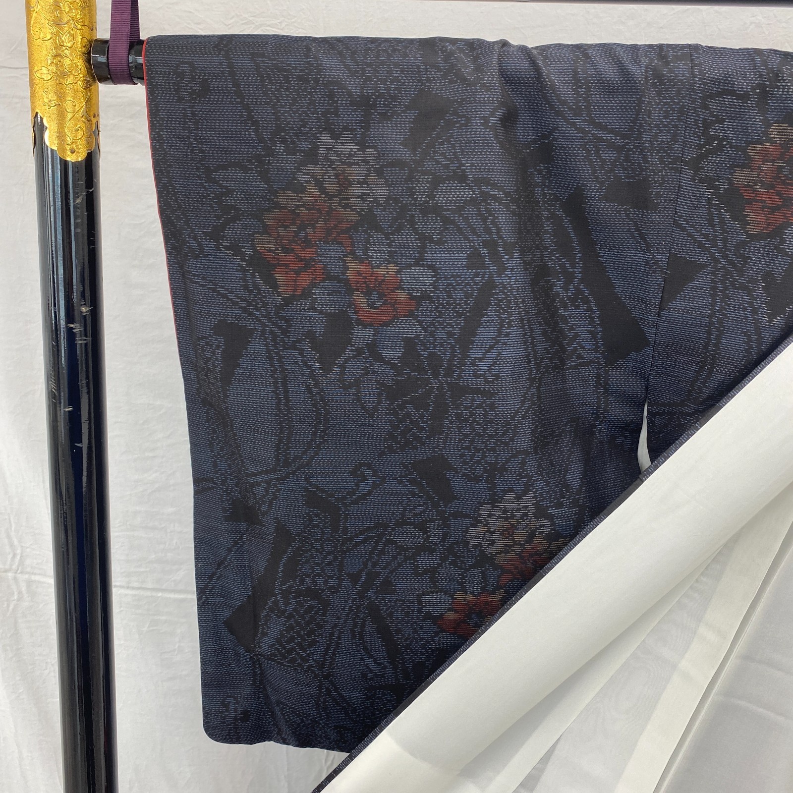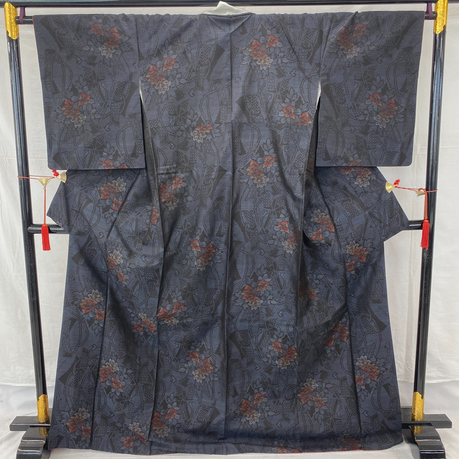 как выглядит Japanese Vintage Kimono Silk Navy Oshima Tumugi Traditional Authentic Length66in фото
