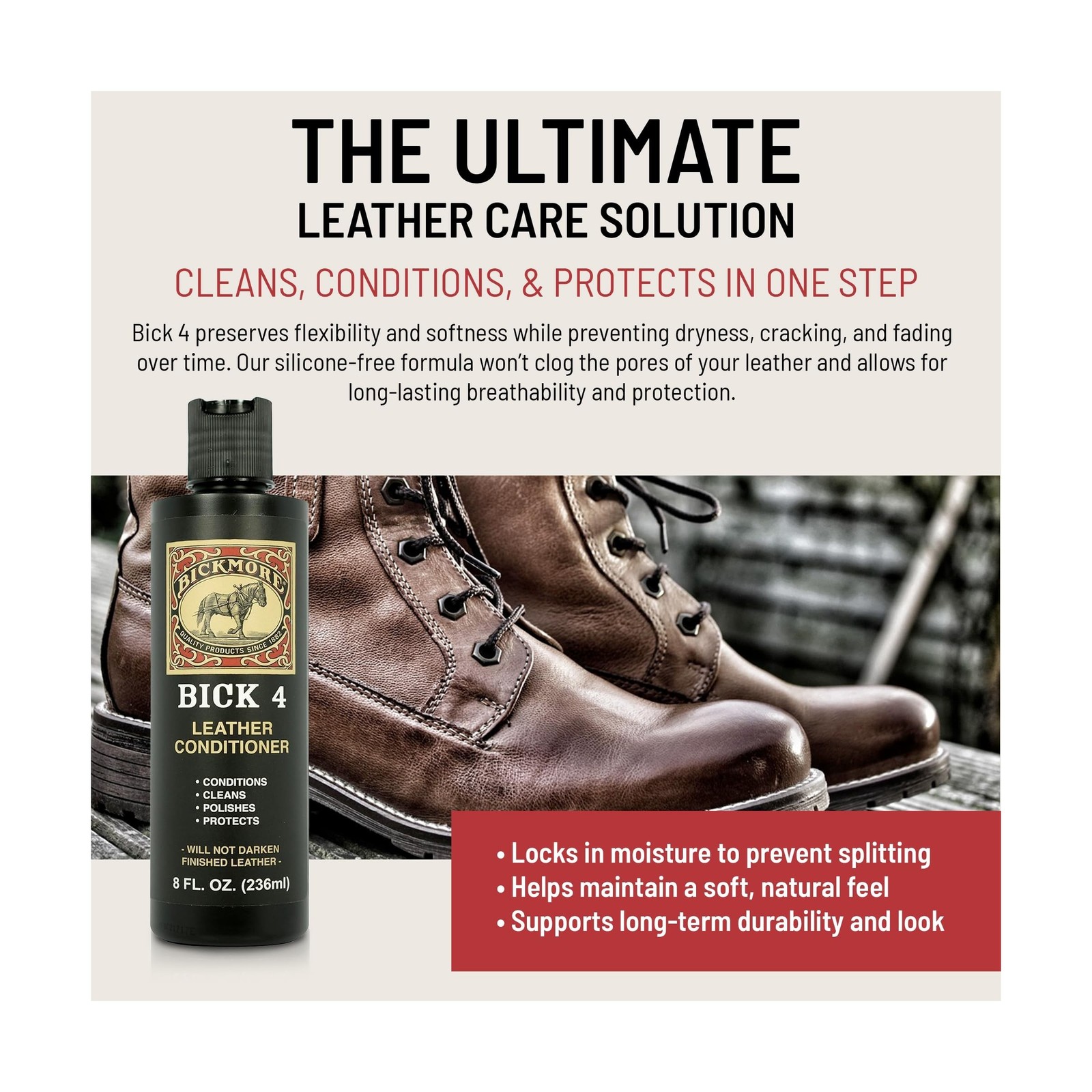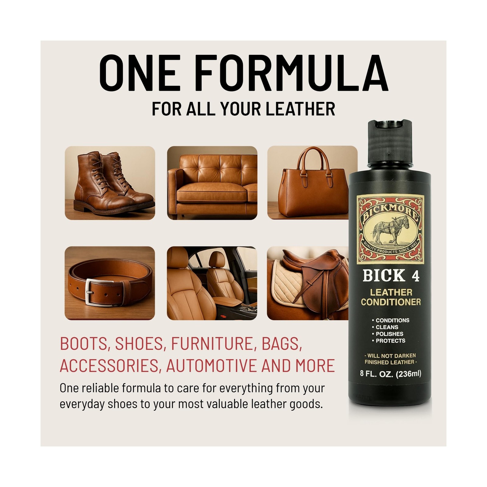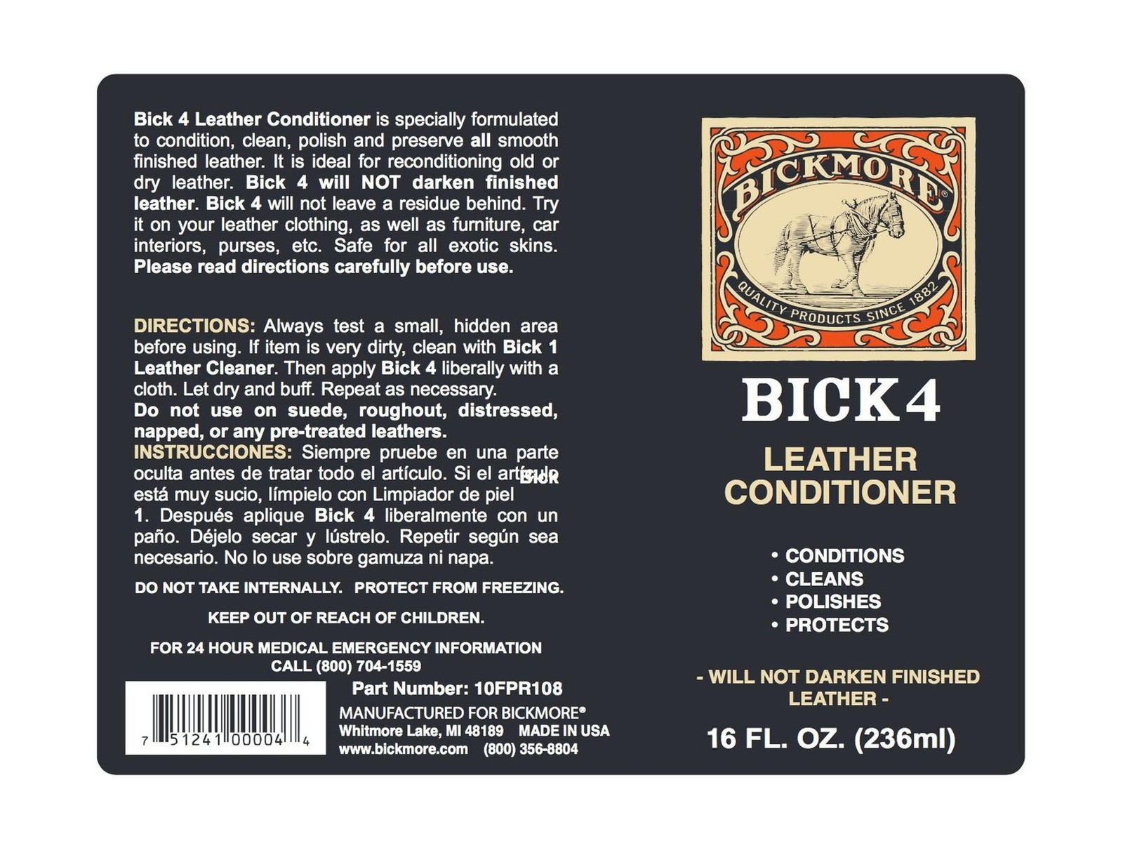 Bickmore Bick 4 Leather Conditioner and Leather Cleaner 16 oz - Will Not Dark...
