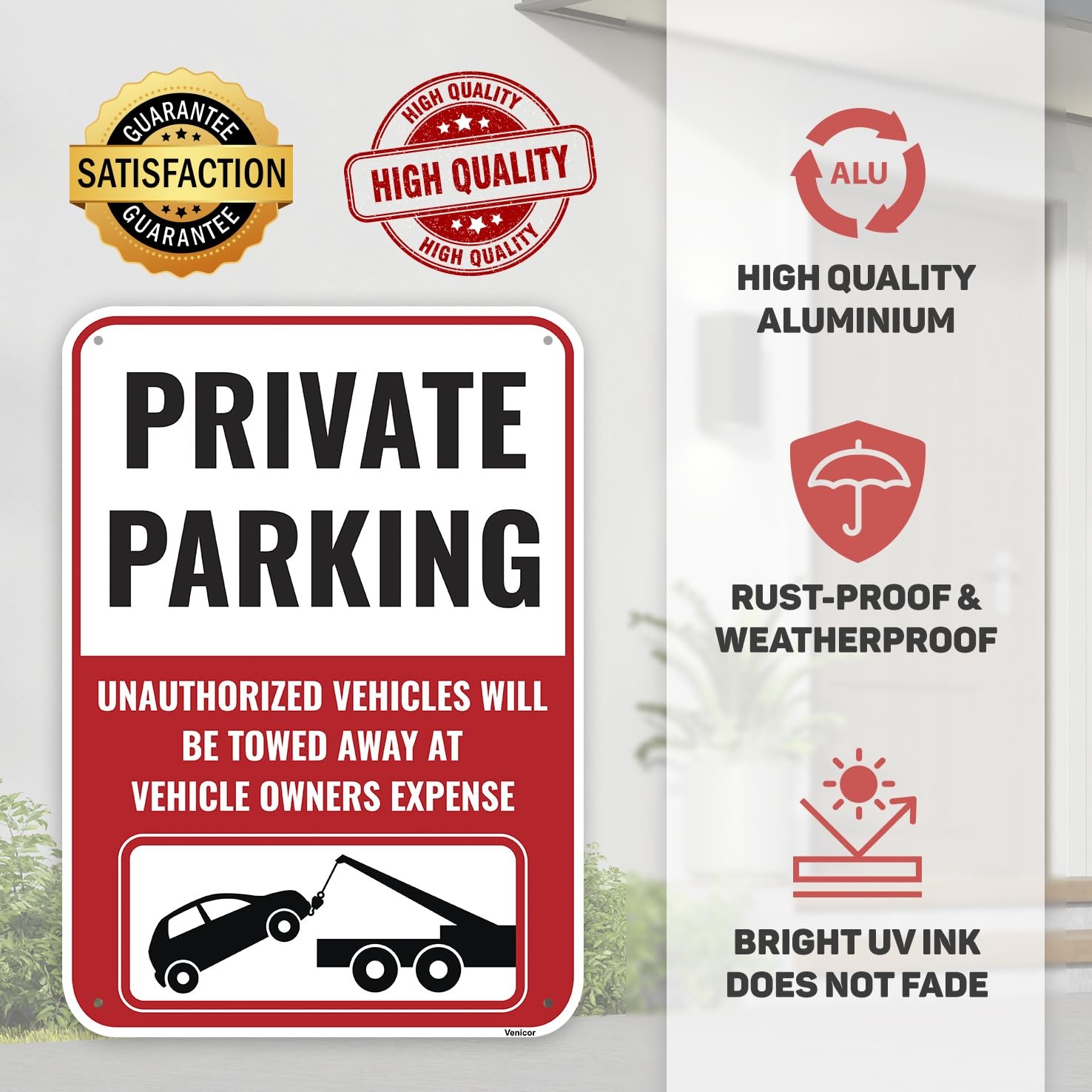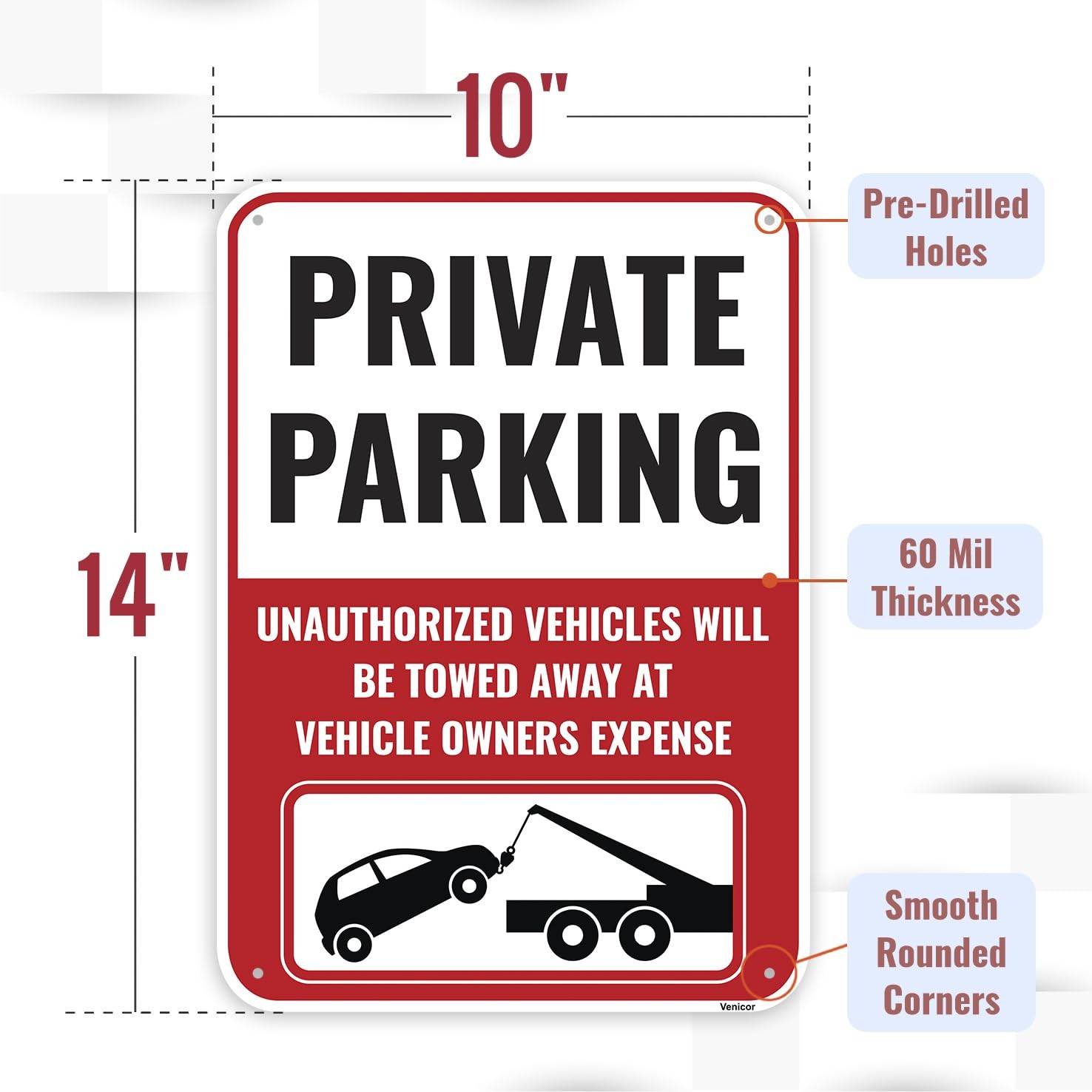 1PC Private Parking Sign, 14 x 10 Inches - Small Signage, Red, Black, White