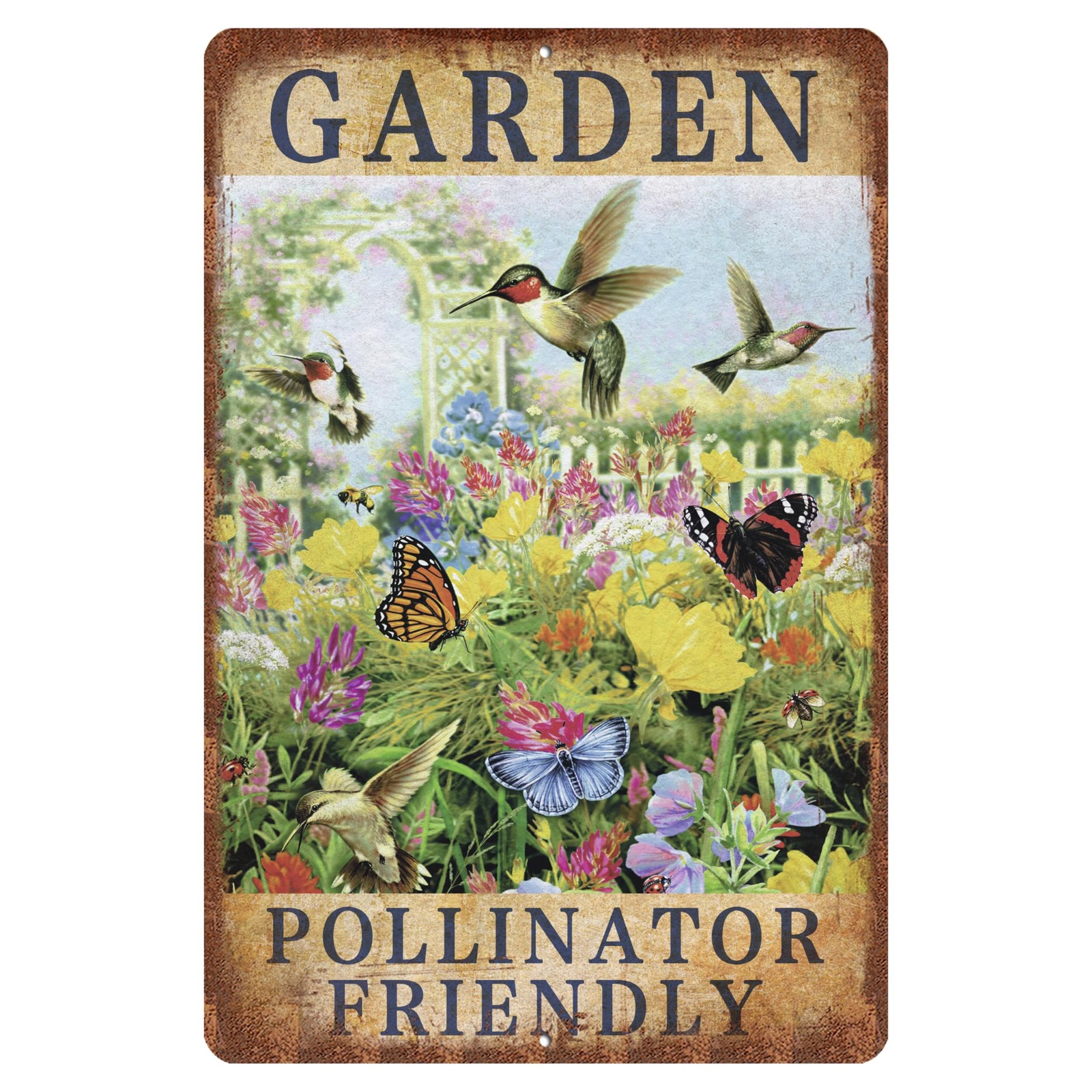 Vintage Garden Signs Pollinator Friendly Retro Yard Metel Tin Signs outdoor A...