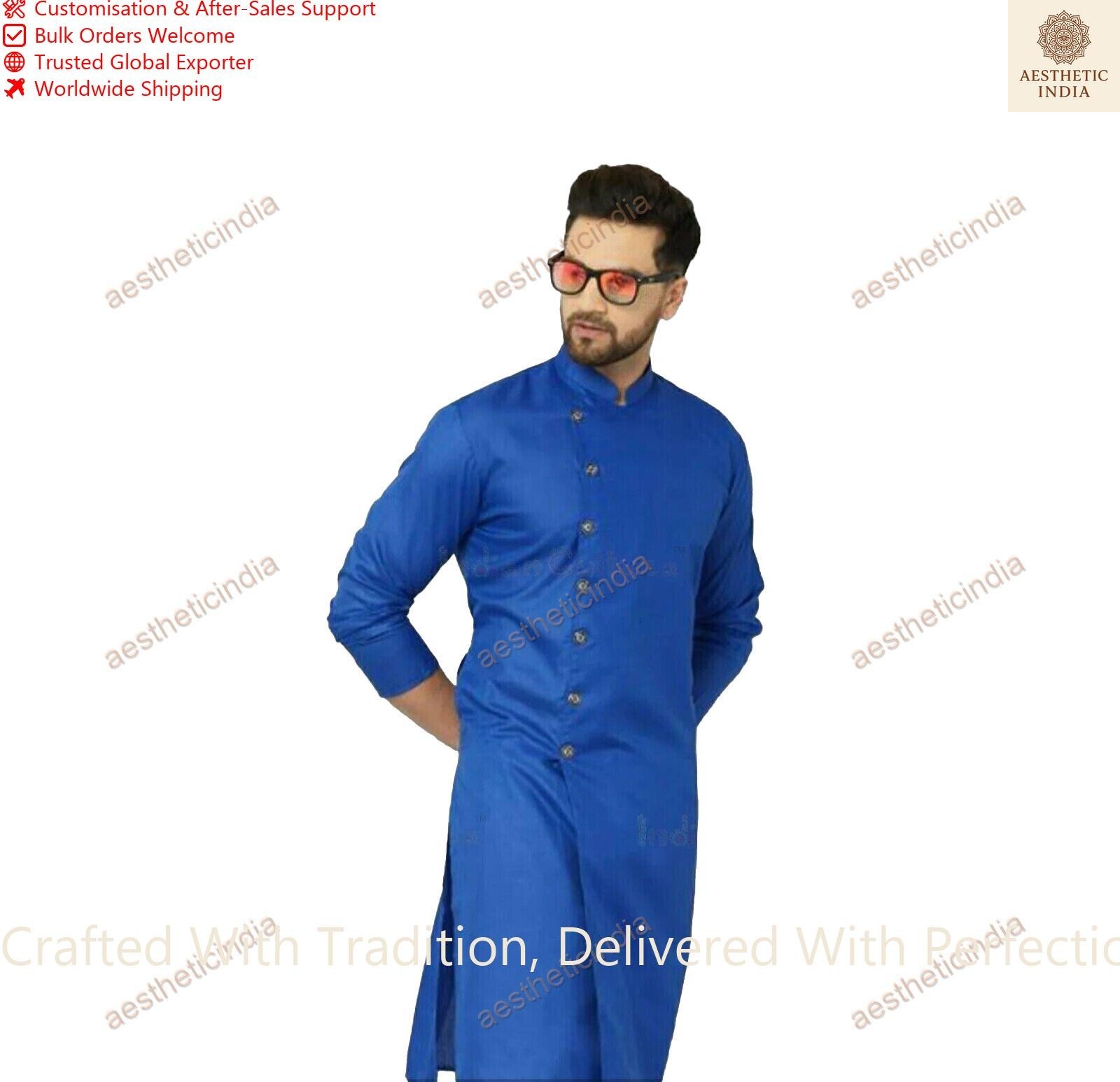 Mens Kurta Long Kurta Top Tonic Traditional Party Dress Kurta Color Blue