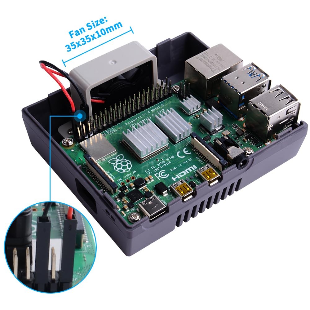 GeeekPi Case for Raspberry Pi 4, 4 with Cooling Fan and 4 Grey