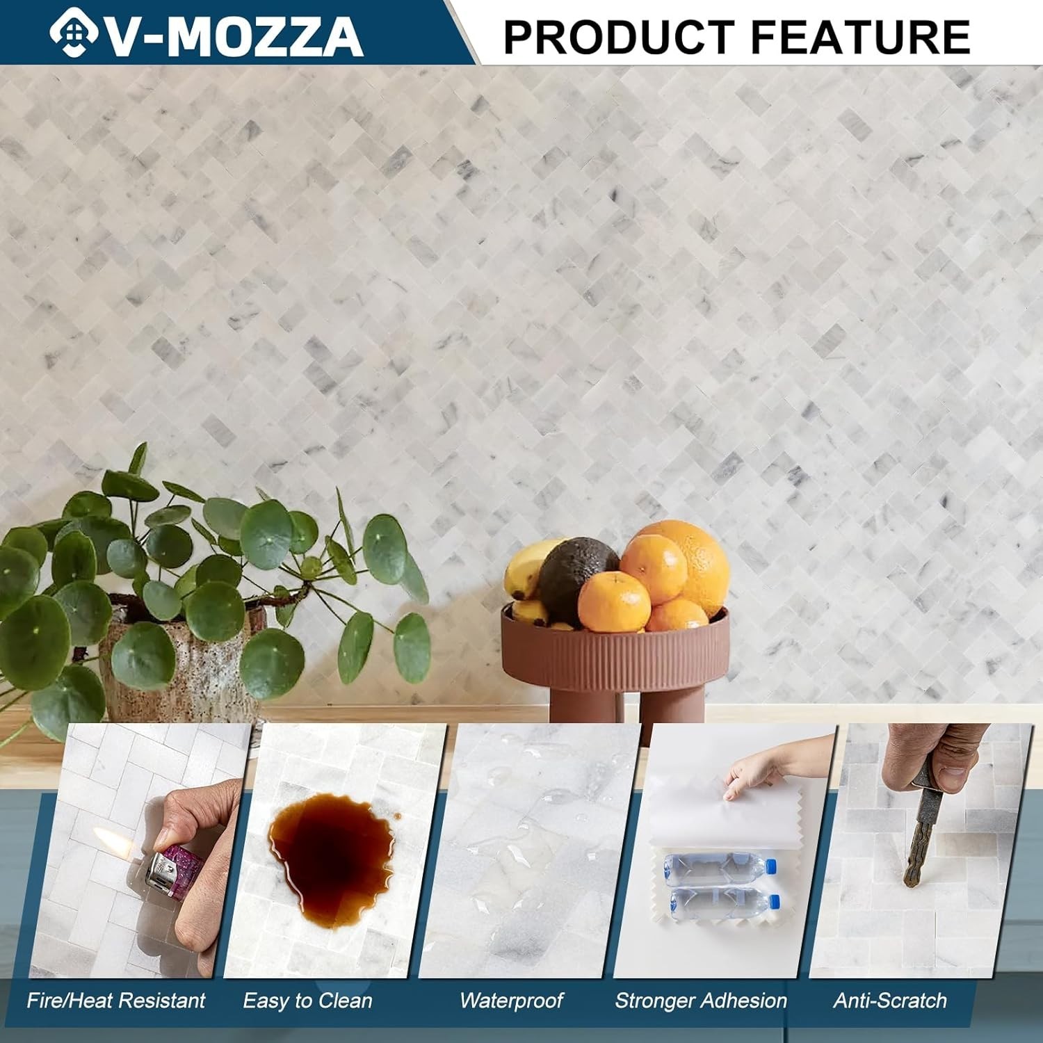 Peel and Stick 5-Sheet 3D Genuine Marble Mosaic Wall Tiles