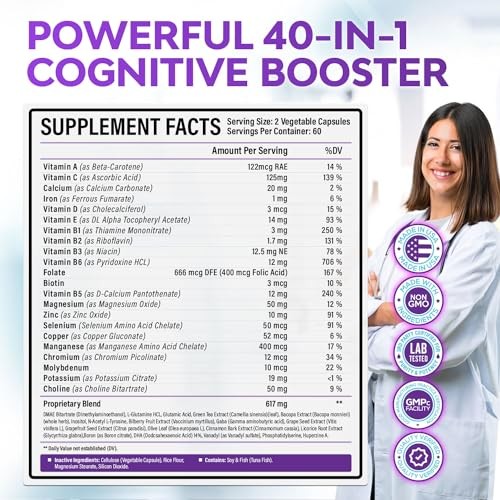 Active Ingredients: DMAE, 40 natural brain-boosting ingredients