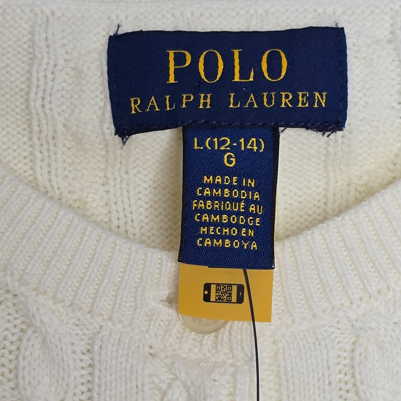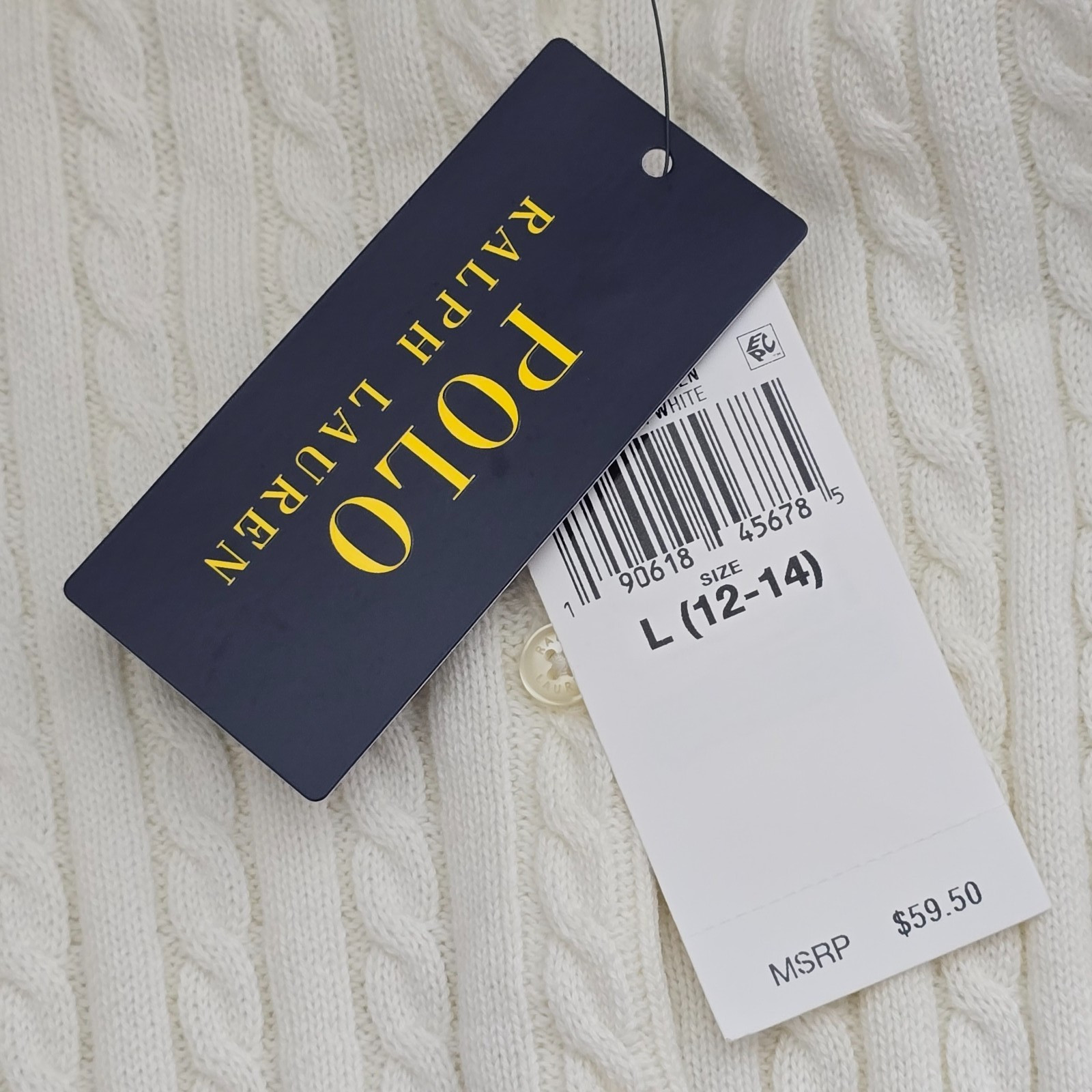 Polo Ralph Lauren Girls Large 12-14 Cable Knit Cardigan Sweater Warm White NEW