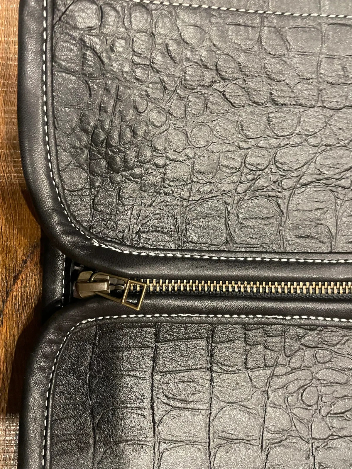 как выглядит Real Leather Black Embossed Vest with White Skin Detail, Biker Style фото