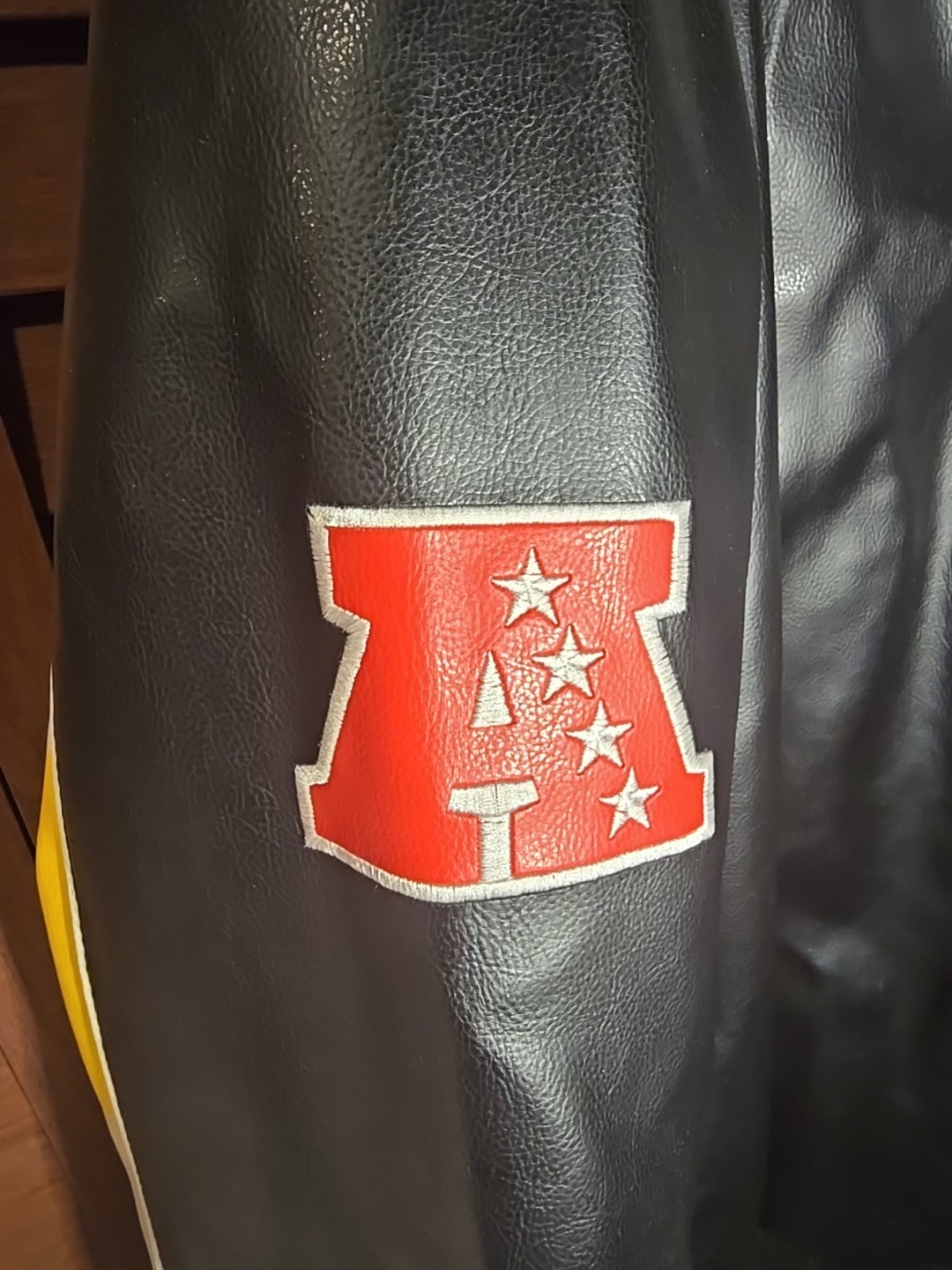 как выглядит Pittsburgh Steelers NFL Leather Varsity Bomber Jacket Size 6XL фото