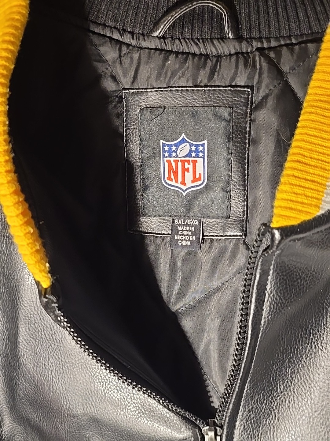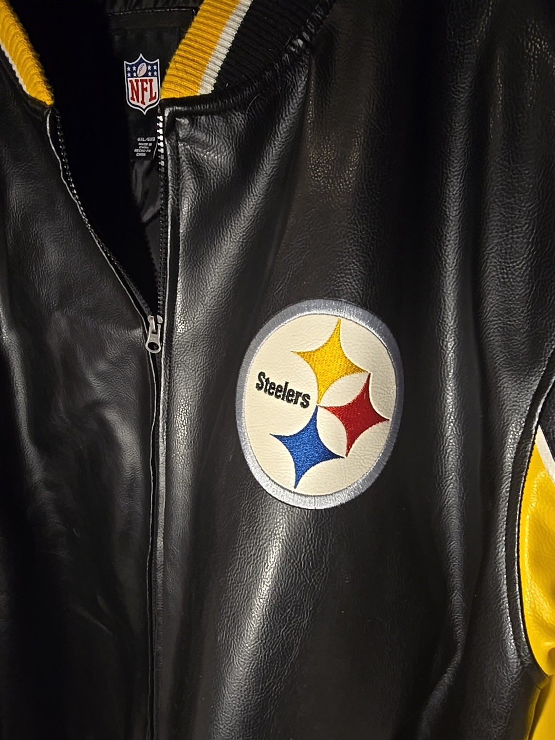 Pittsburgh Steelers NFL Leather Varsity Bomber Jacket Size 6XL