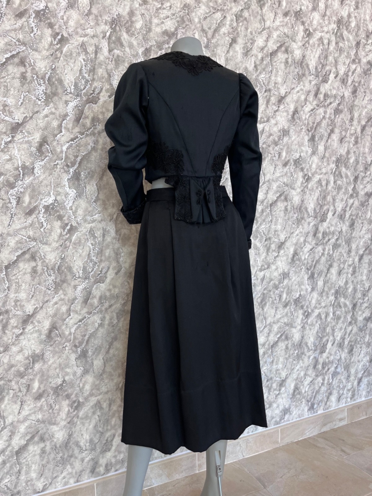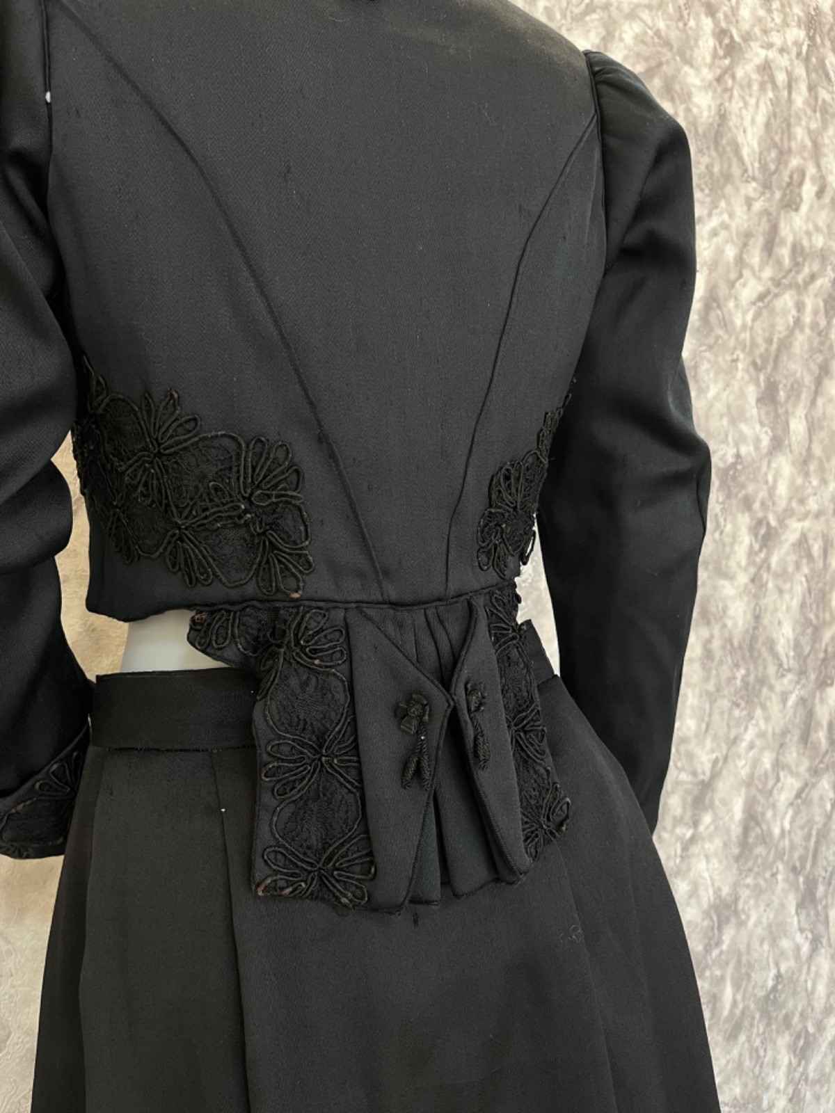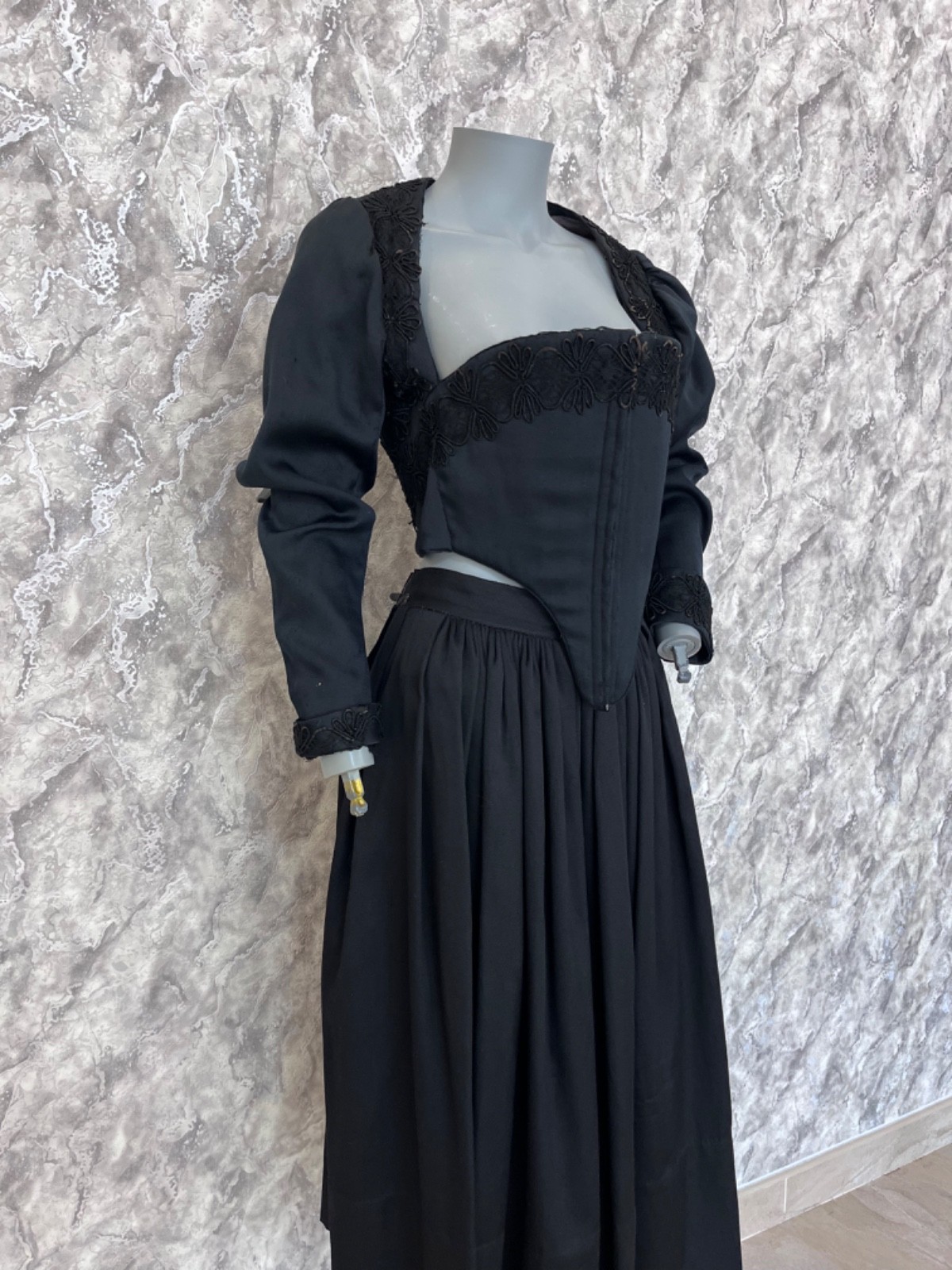 как выглядит Antique 1900s Victorian Corset Bodice Skirt Set Black Edwardian Era Dress Rare фото