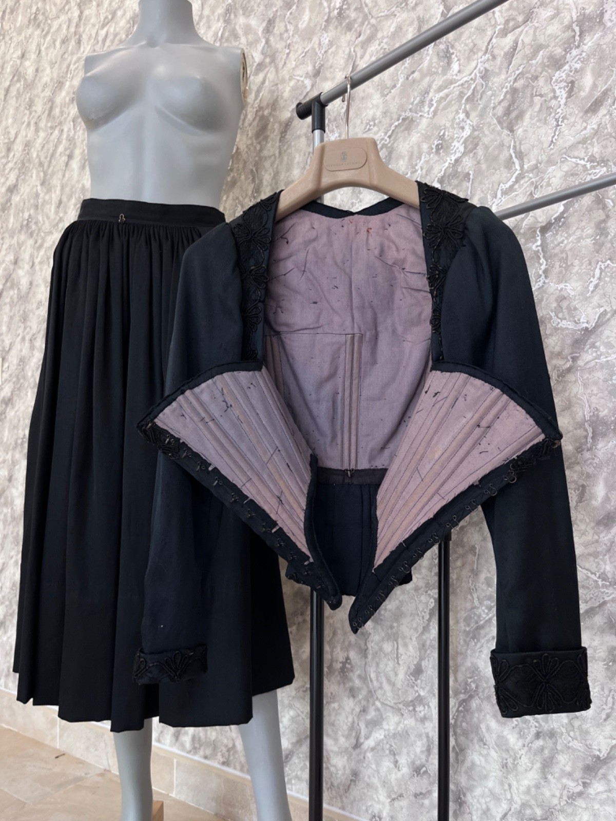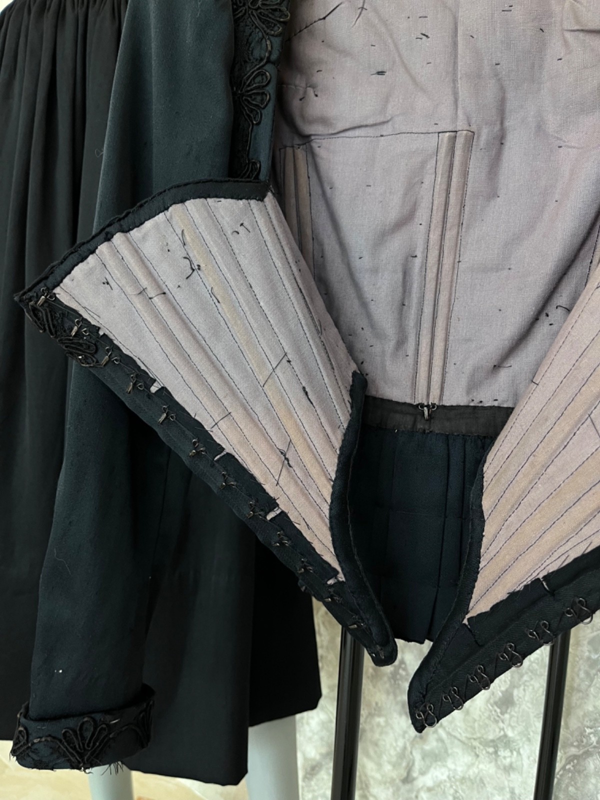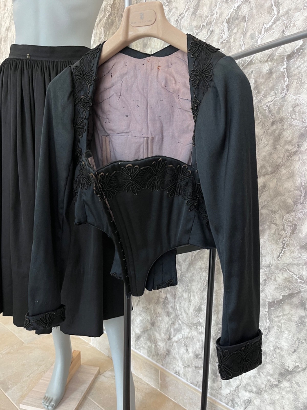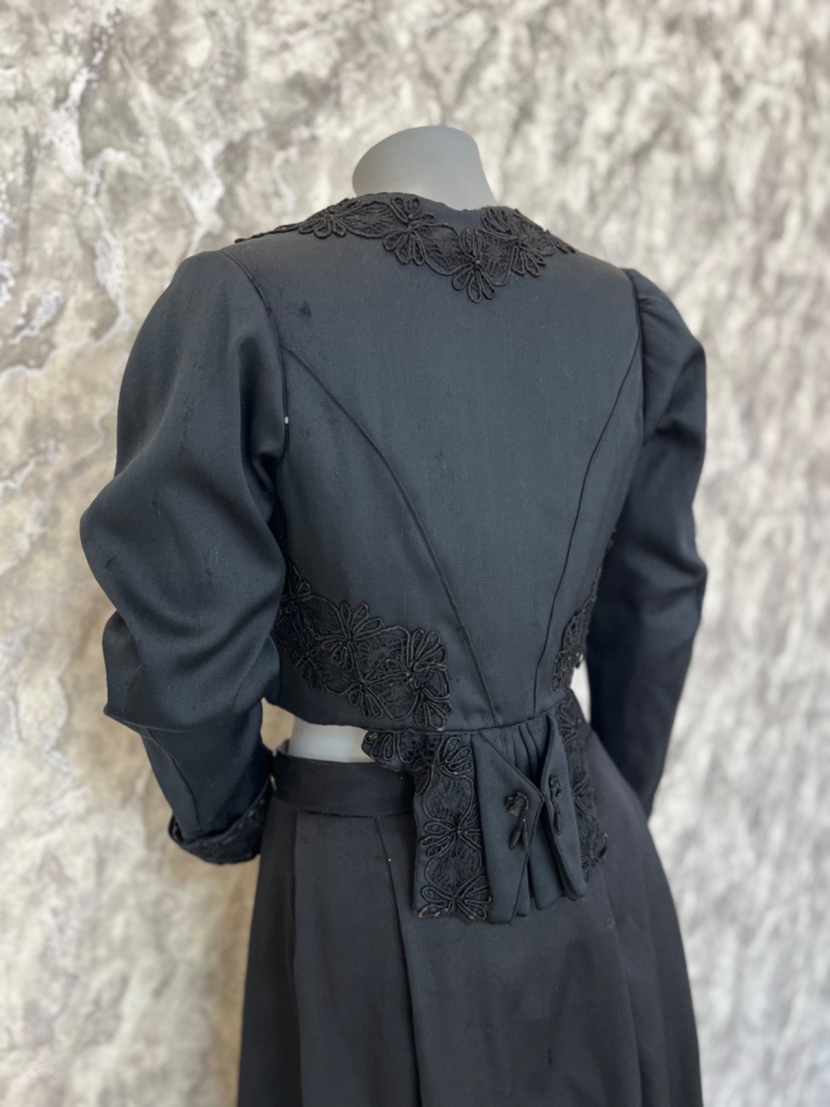 как выглядит Antique 1900s Victorian Corset Bodice Skirt Set Black Edwardian Era Dress Rare фото