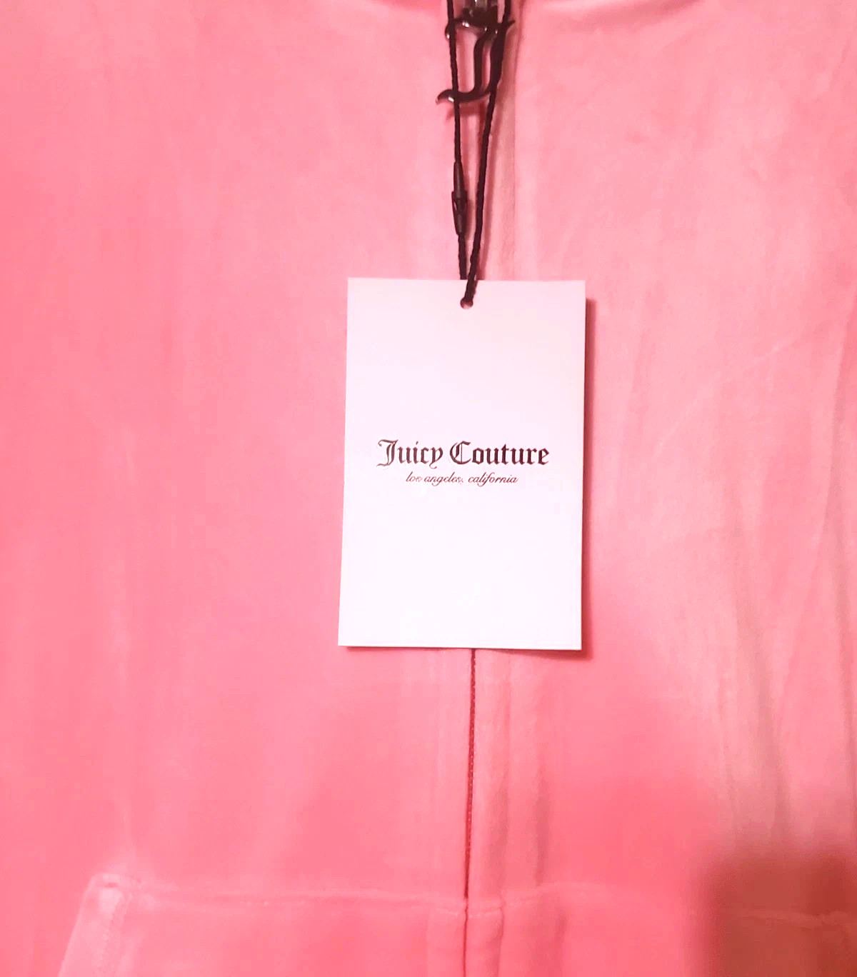 как выглядит Juicy Couture Medium Flamingo Pink Bling Velour Shorts Long Sleeve Hoodie фото