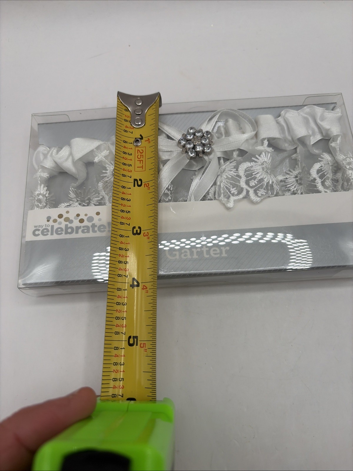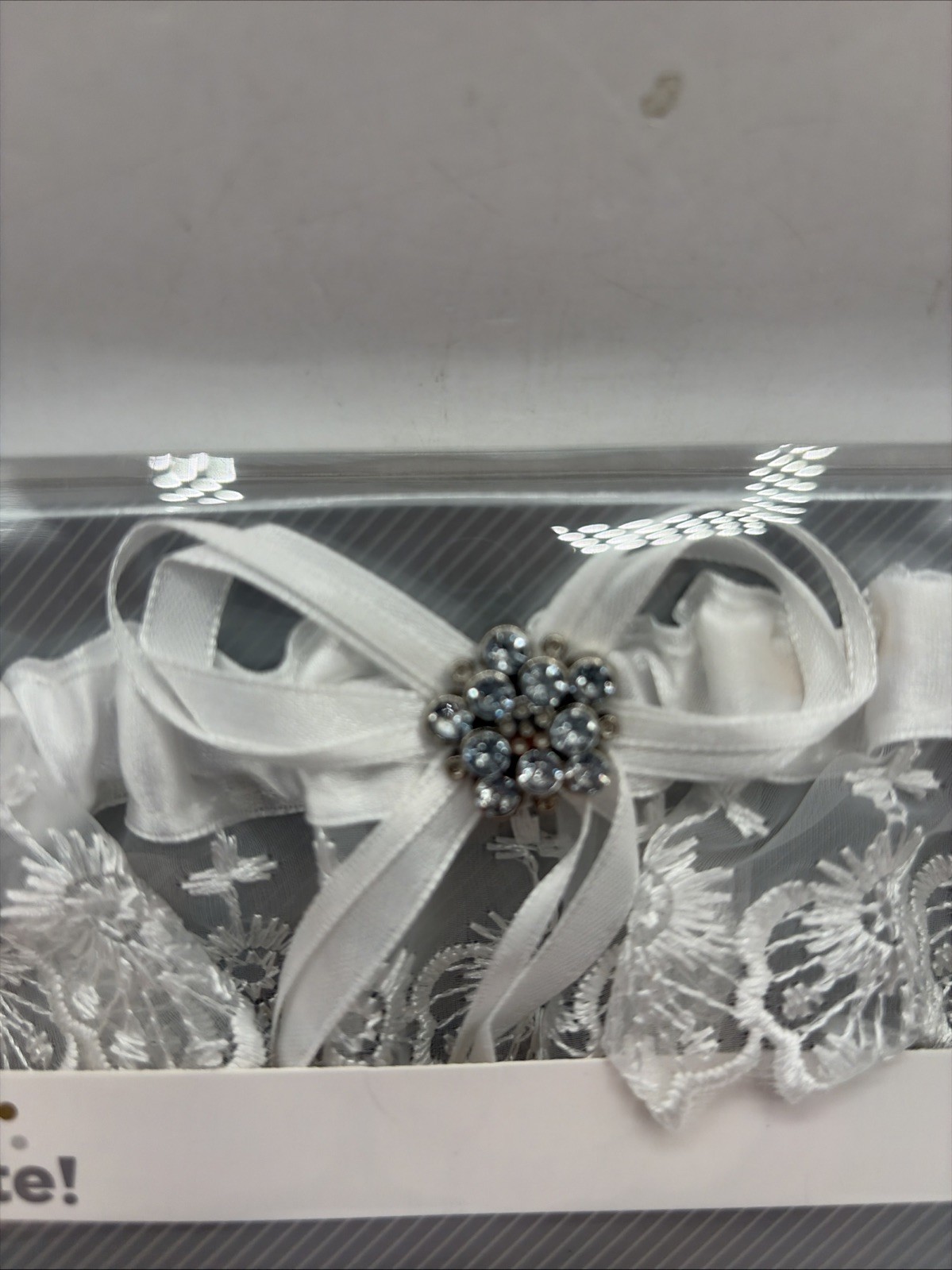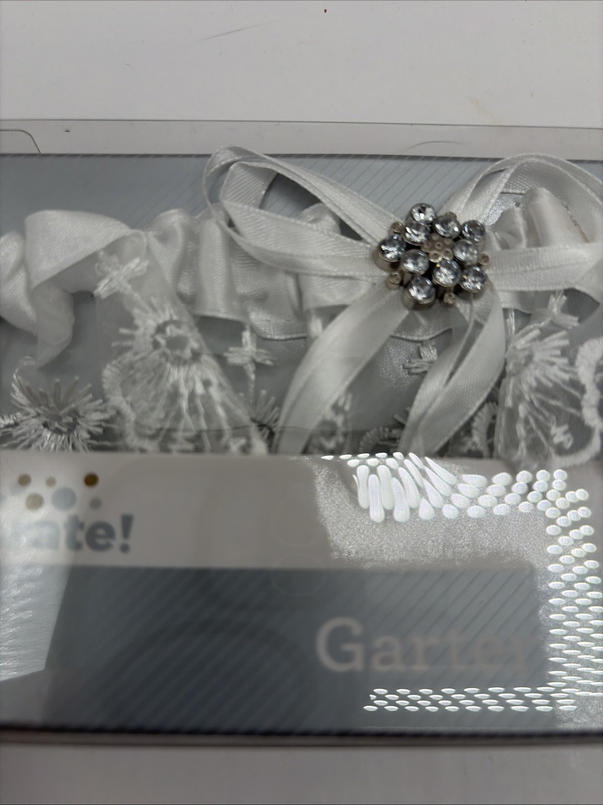 как выглядит NEW Embroidered White Lace Wedding Garter w/Rhinestone by Way To Celebrate NIB фото