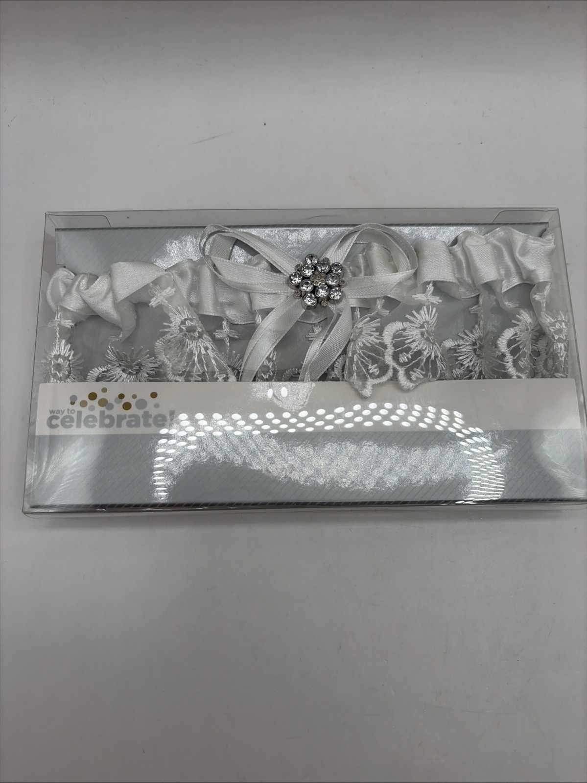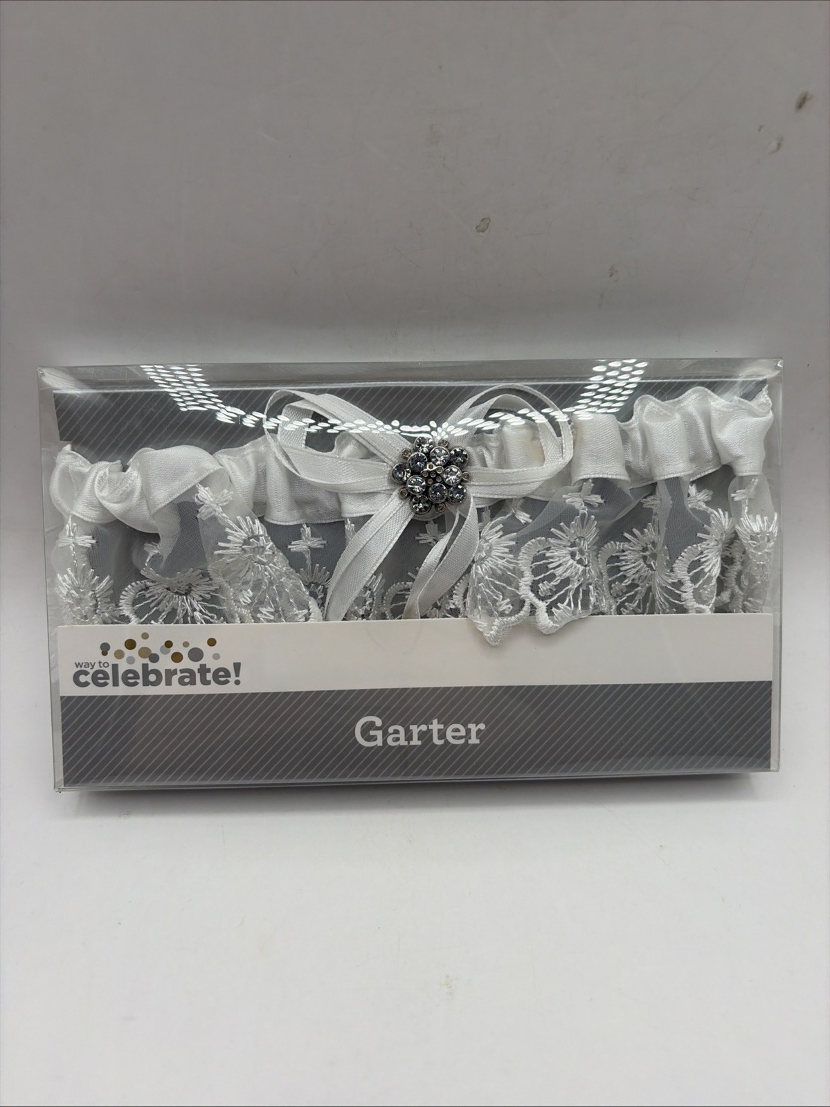 NEW Embroidered White Lace Wedding Garter w/Rhinestone by Way To Celebrate NIB