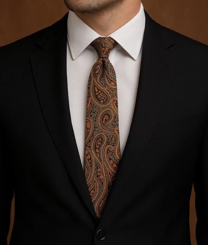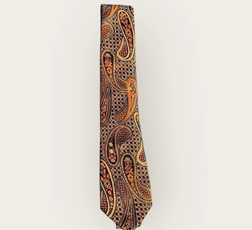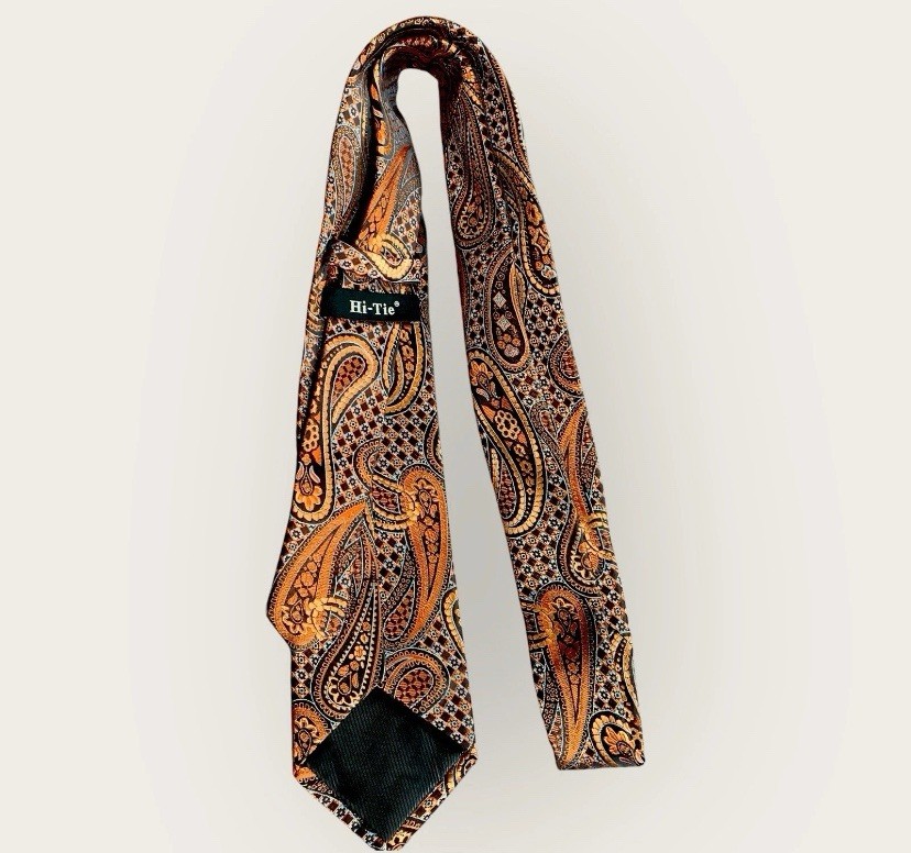 Luxury Silk Paisley Tie Lt. Blue Orange Black Classic Design Colorful Standout