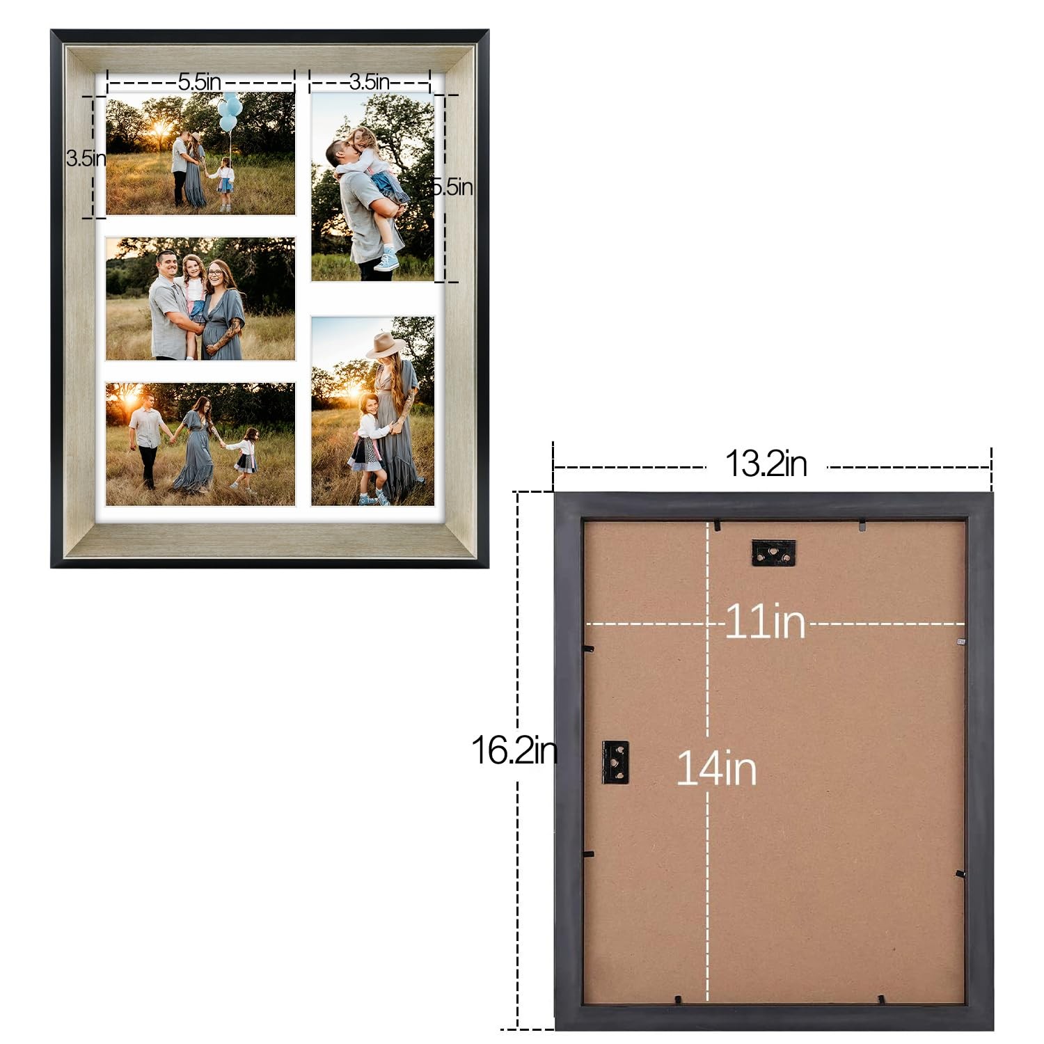 , 11x14 Collage Picture Frame with 5 Openings for 4x6 Photos or Displays 11x1...