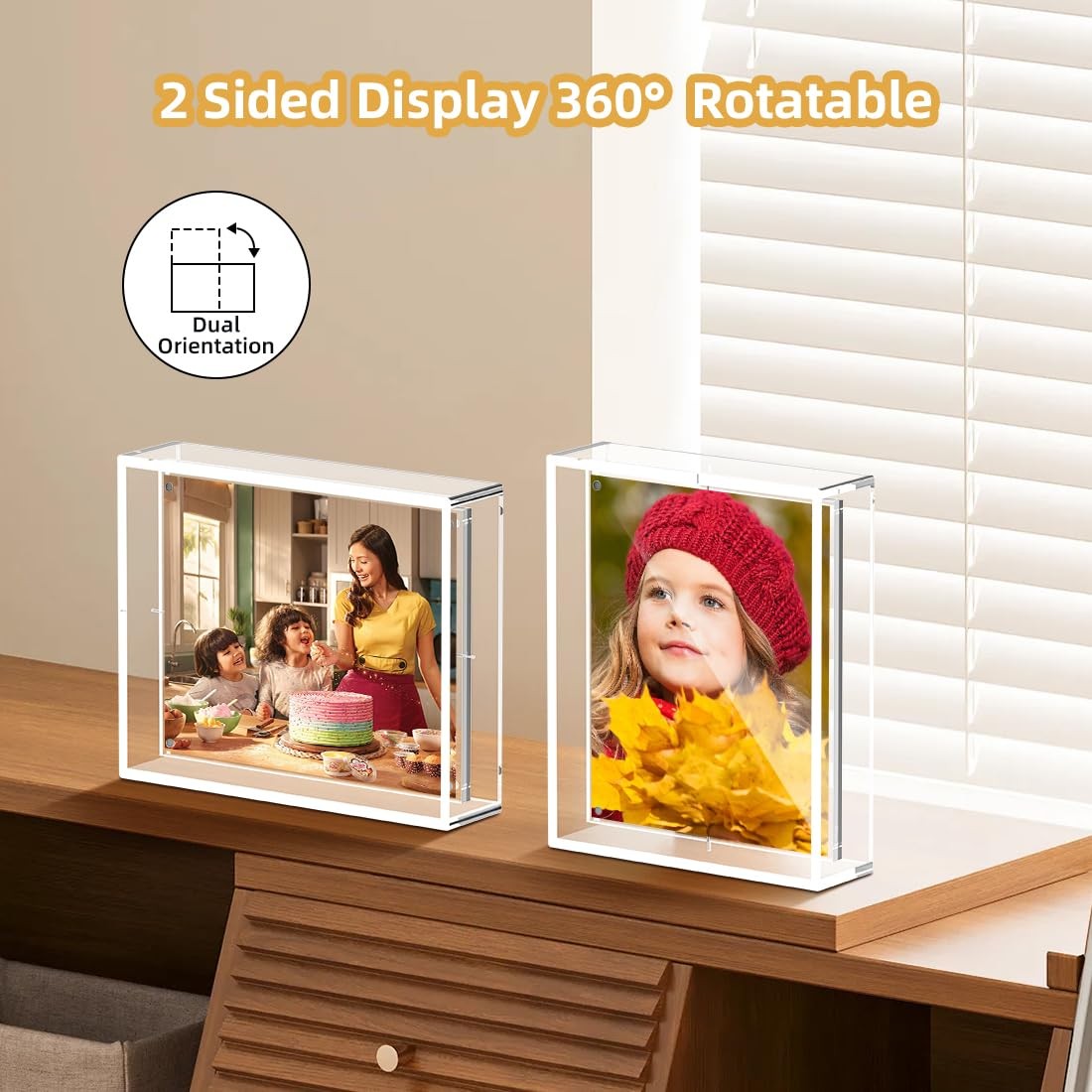 5x7 Acrylic Clear Picture Frame,Rotating Double Sided Magnetic Picture Frames...