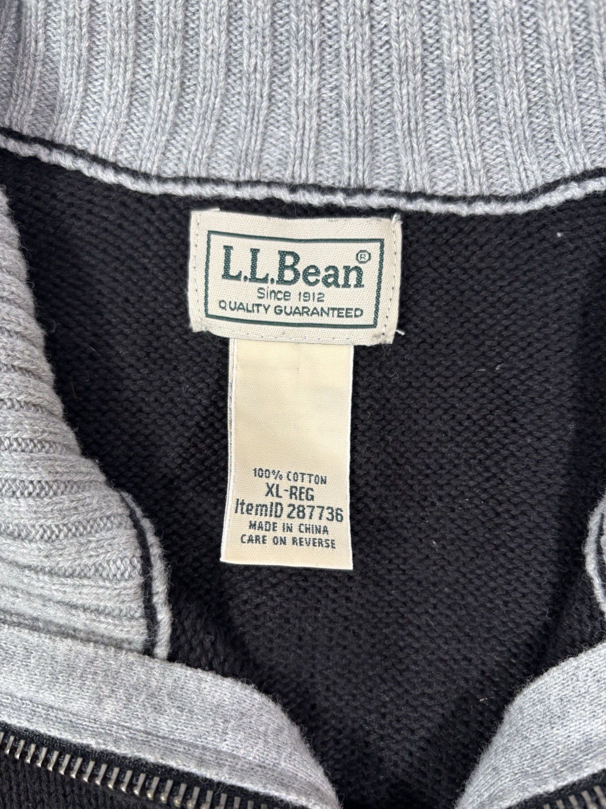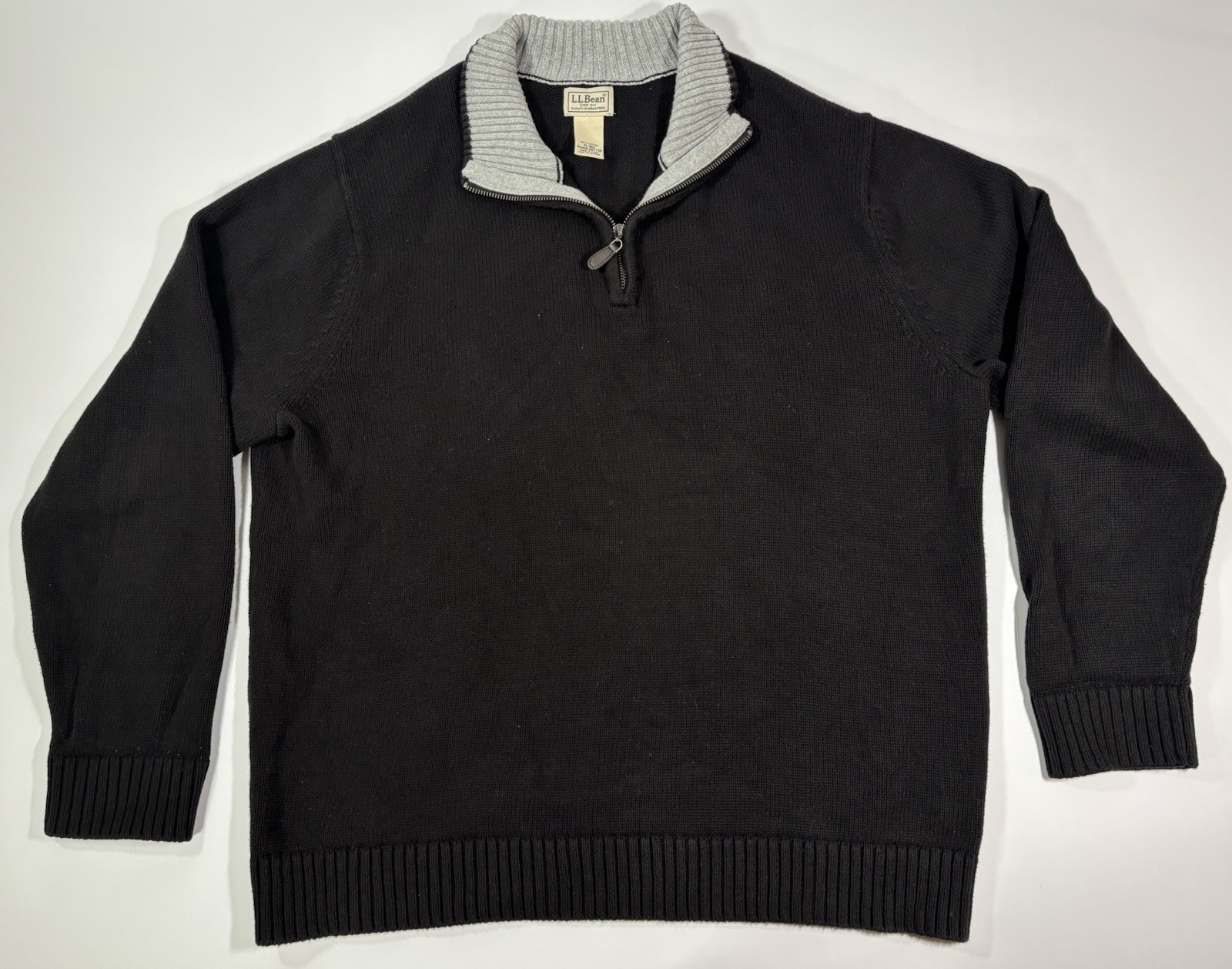 как выглядит LL Bean Solid Black Cotton Quarter Zip Pullover Sweater Men s XL Regular фото