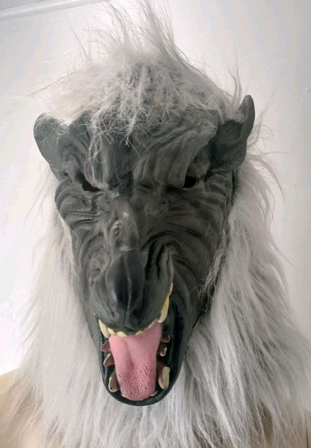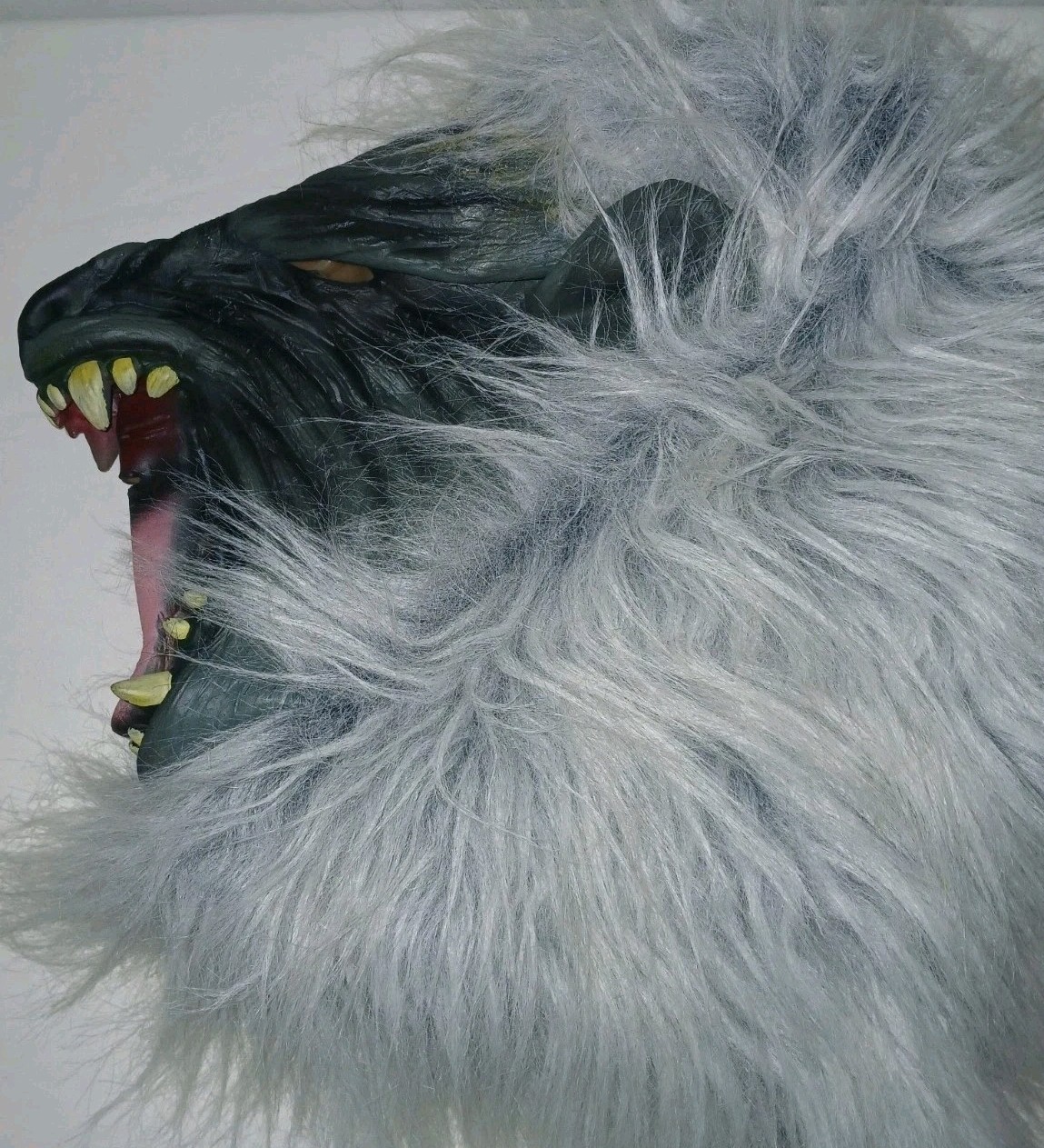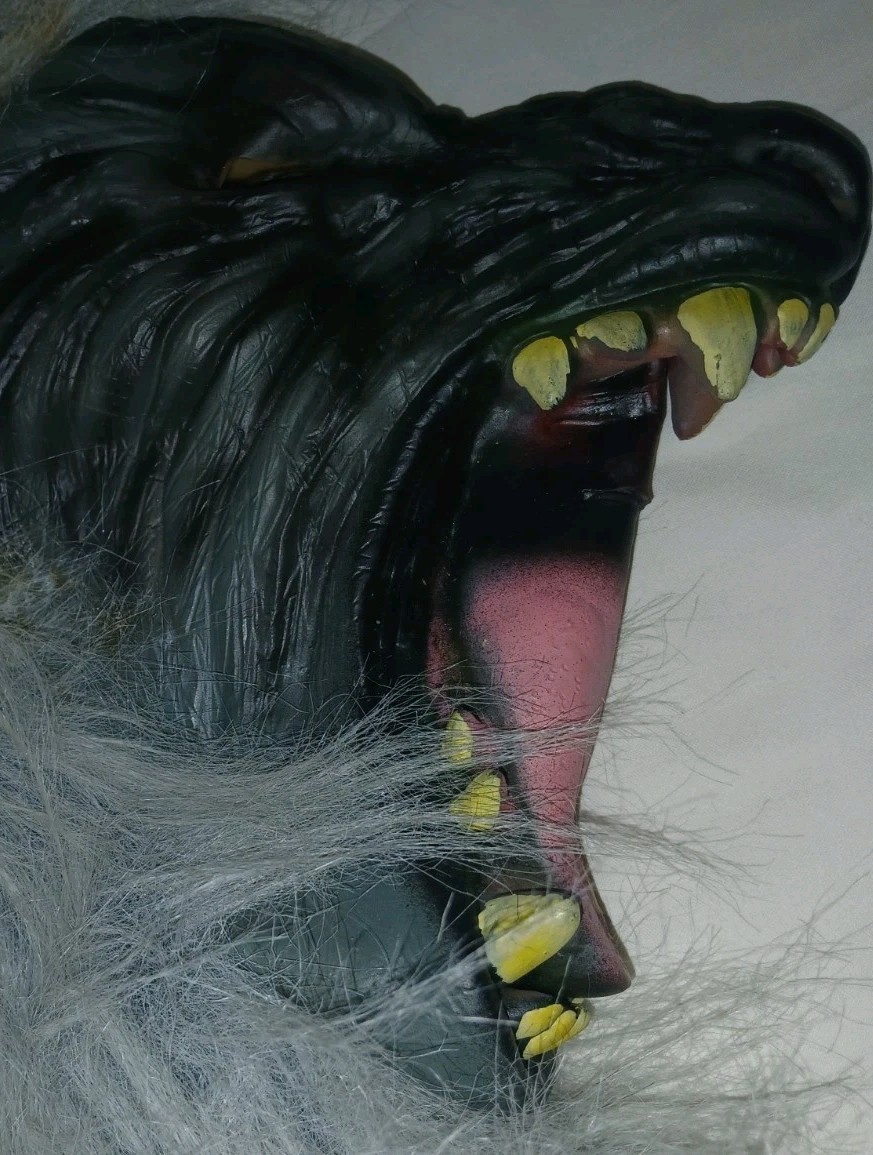 как выглядит Vintage Latex Werewolf Mask Gray Hair Horror Monster Prop Halloween Display фото
