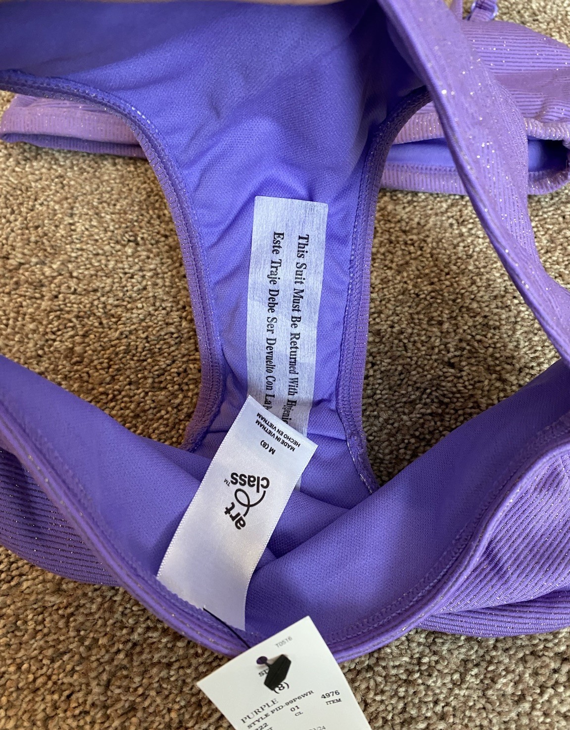 NWT Girl s Art Class Purple Sparkle Bikini. UPF 50 Adjustable Straps. Small 6/7
