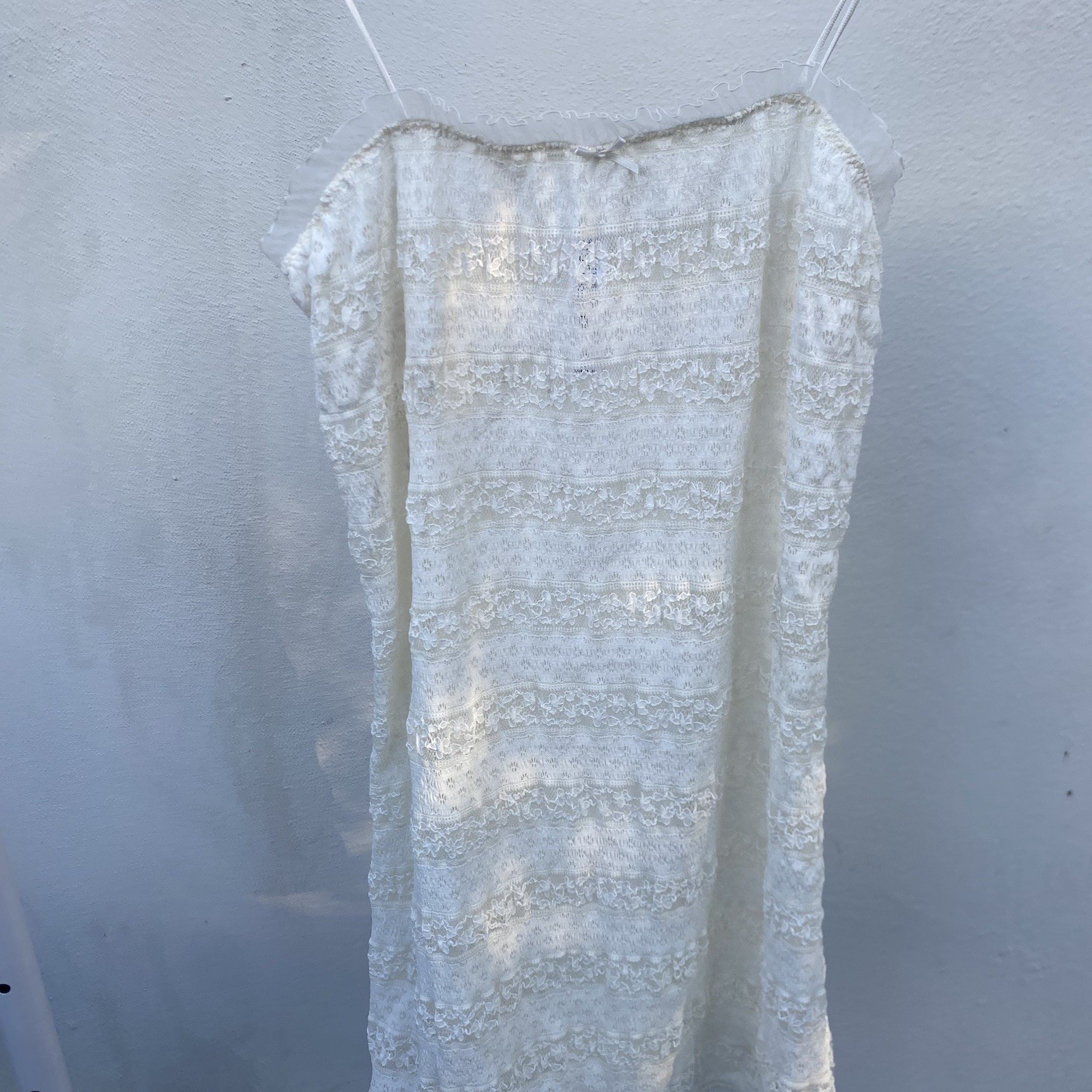 как выглядит Y2K Coquette Ivory Lace Shirred Mini Dress Size Small фото