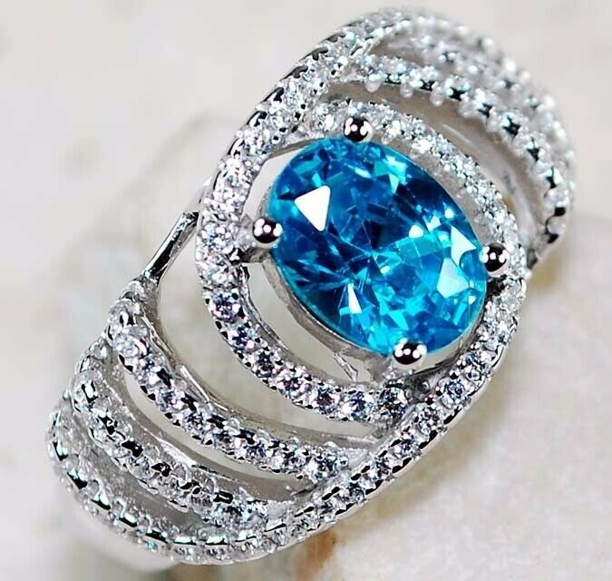 как выглядит 4CT Aquamarine Topaz 925 Solid Sterling Silver Ring Sz 7 IB1-2 фото