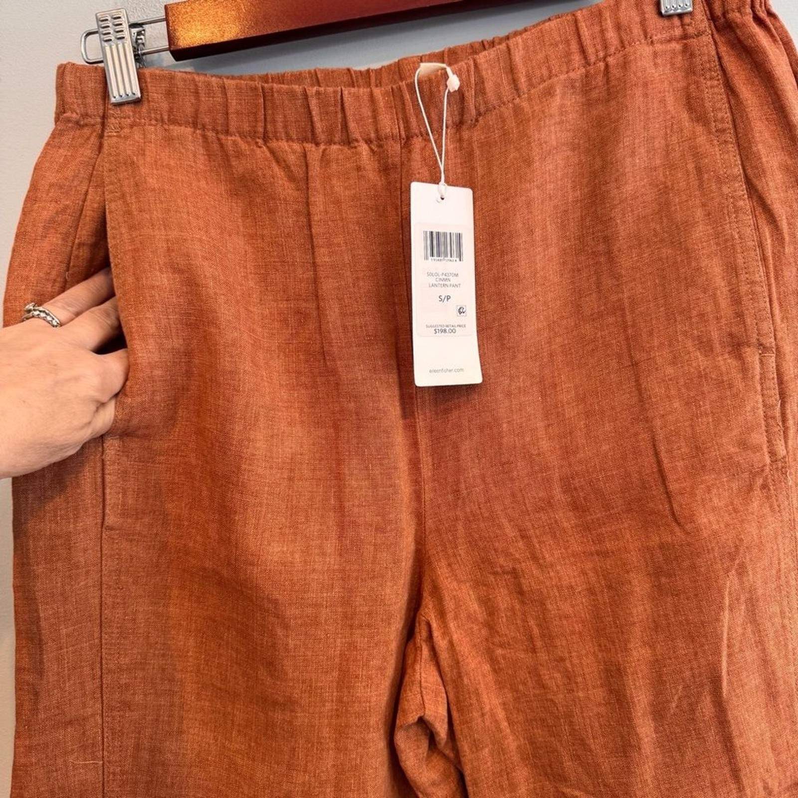 как выглядит NWT Eileen Fisher Cinnamon Linen Delave Lantern Ankle Pant Size S фото