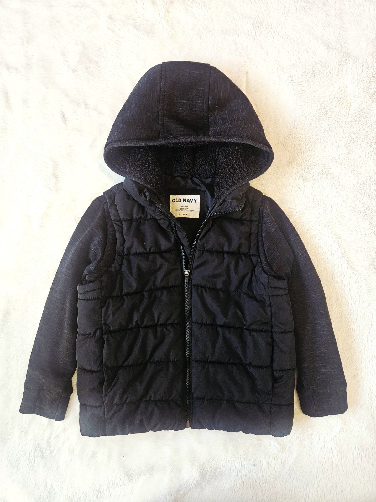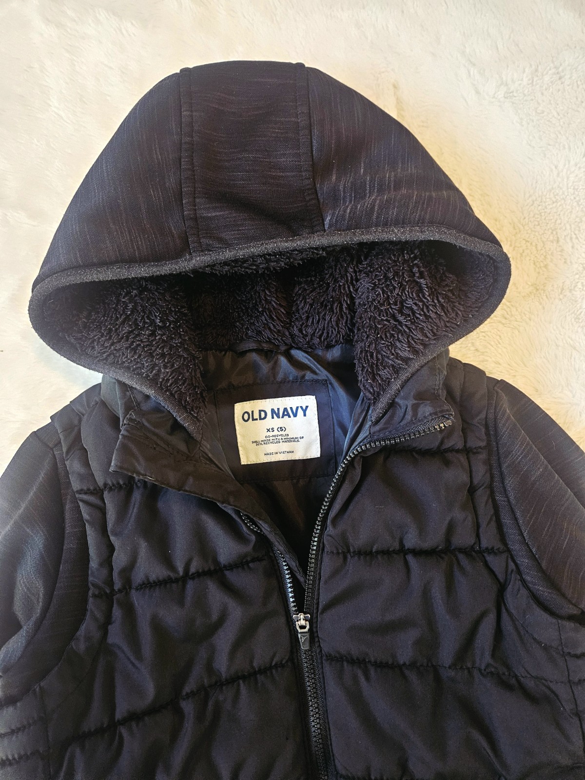 как выглядит Old Navy Boys Hooded Hybrid Zip-Front Jacket Black Size 5T фото