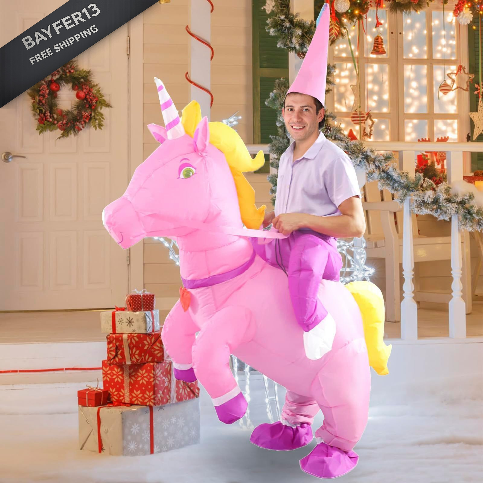 как выглядит SHDEJTG Inflatable Costume Adult Ride On Adult, Riding Pink Unicorn - фото