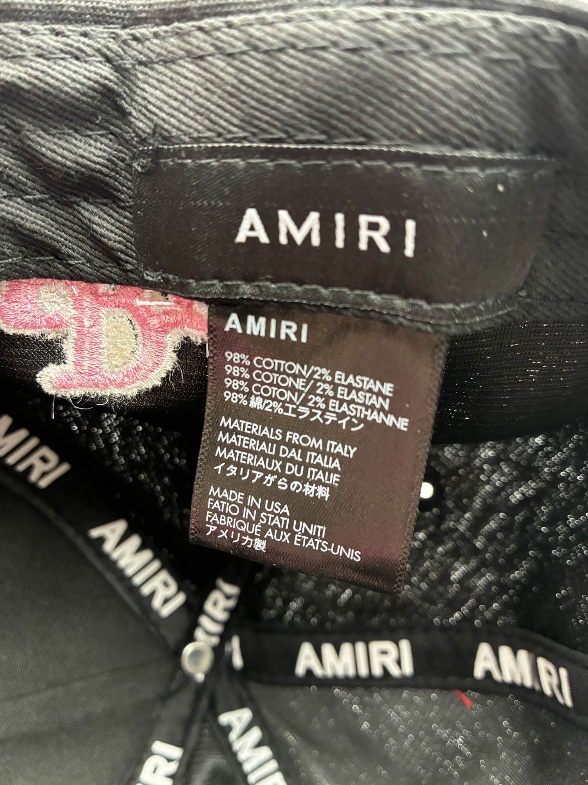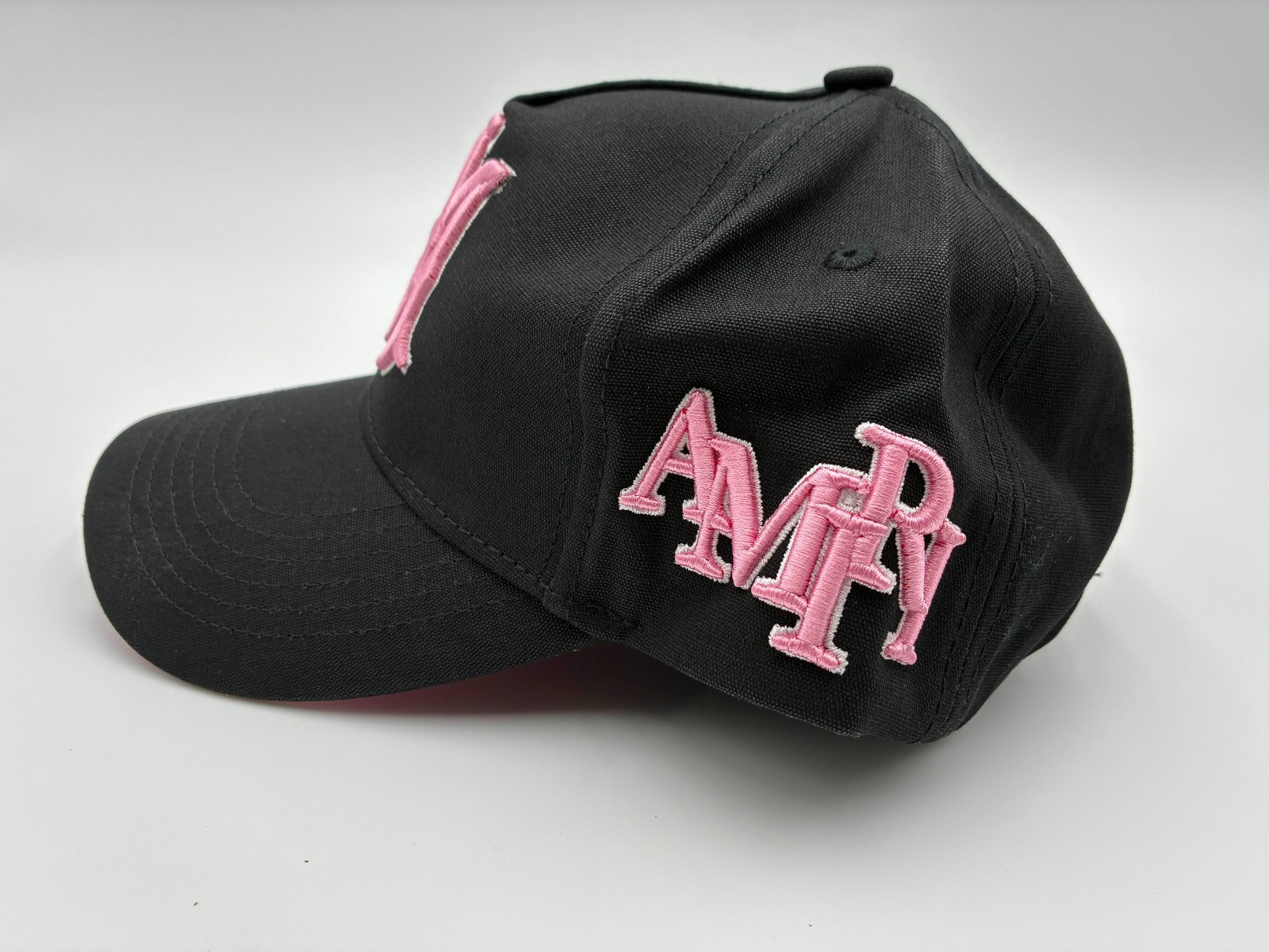 Amiri Logo Baseball Cap Black Pink Embroidered Adjustable Hat
