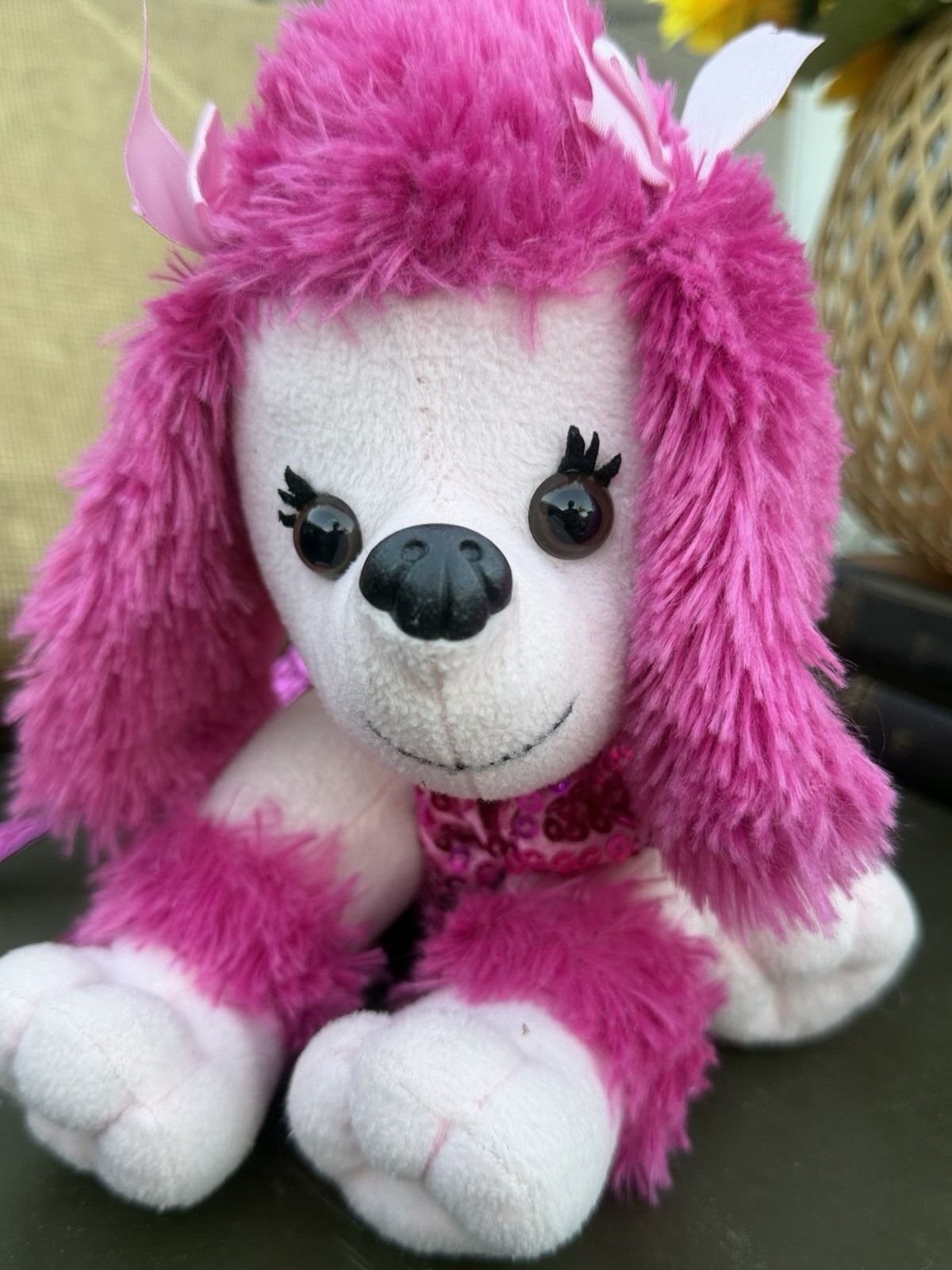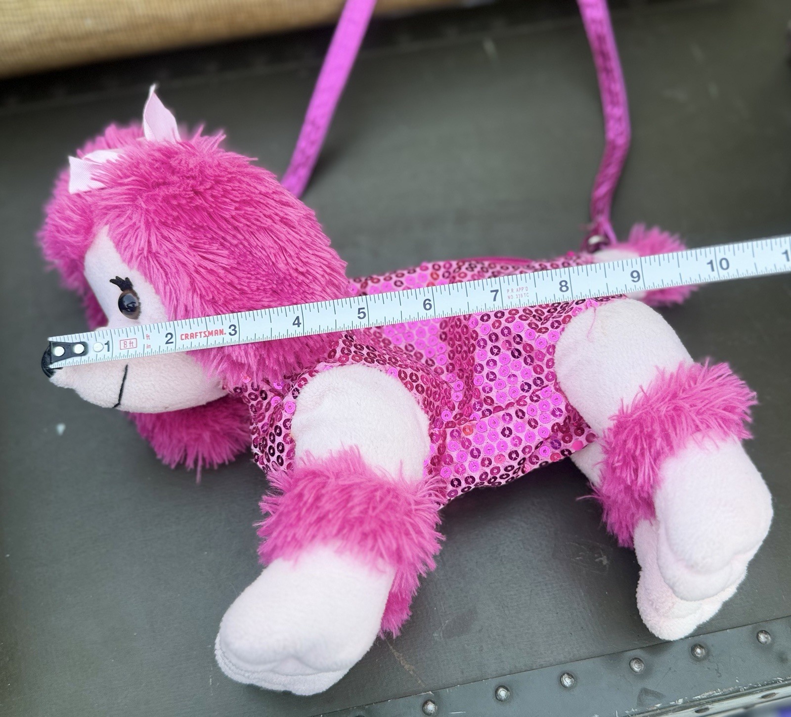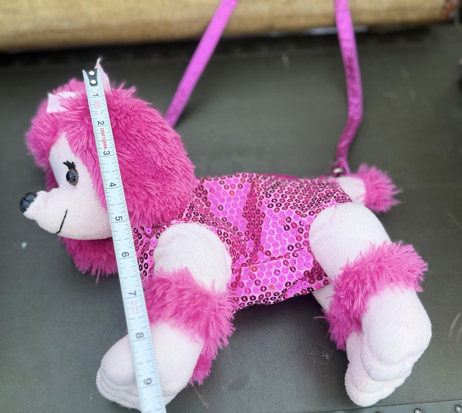 как выглядит Poodle Co Pink Sequin Poodle Shoulder Bag Girls Medium Animal Print Plush фото