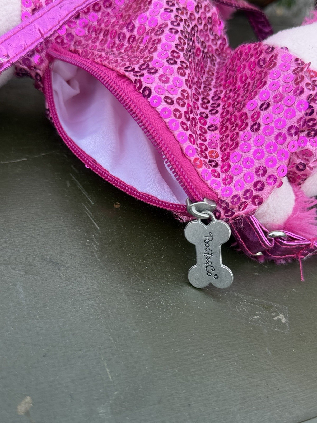 Poodle Co Pink Sequin Poodle Shoulder Bag Girls Medium Animal Print Plush