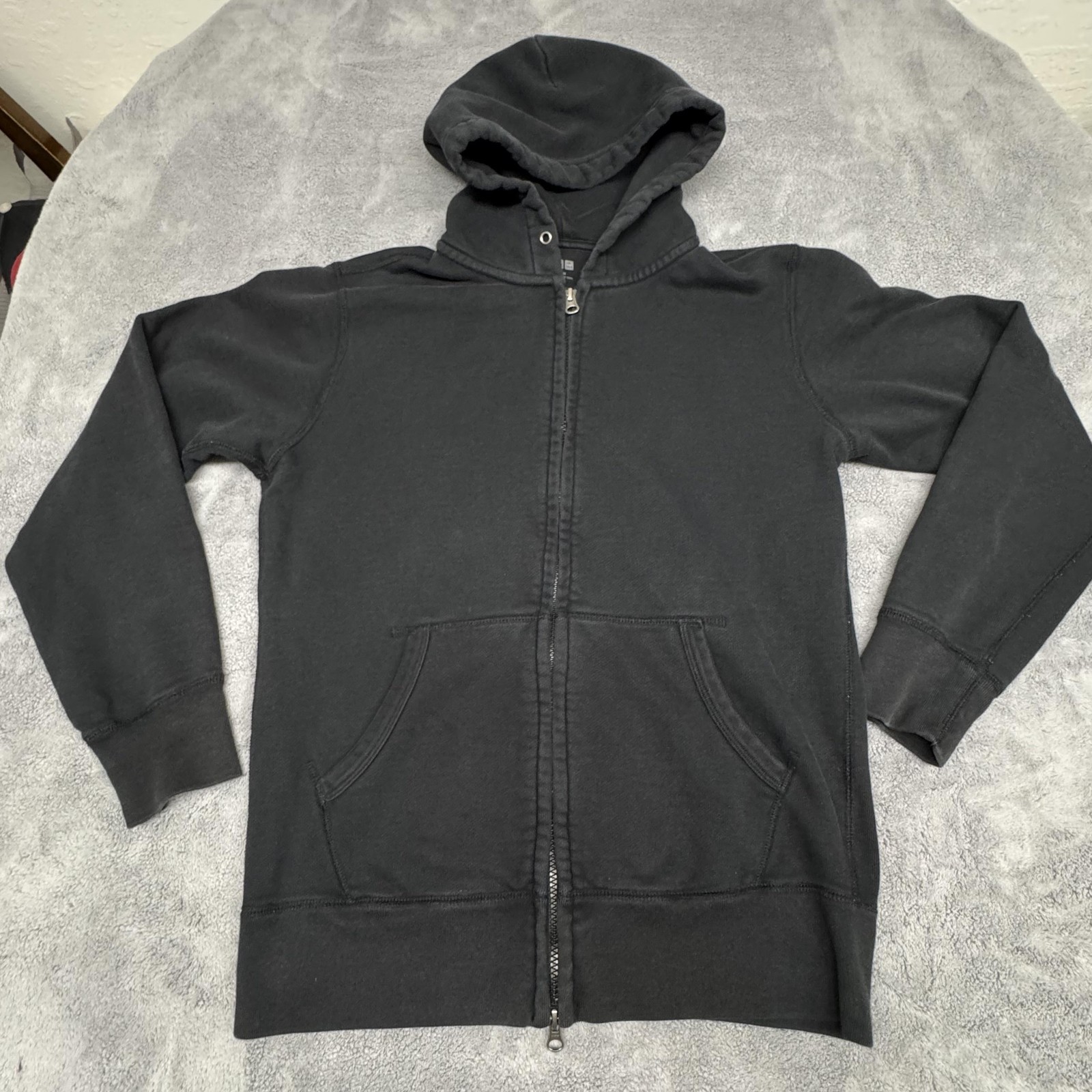 как выглядит Uniqlo Hoodie Mens Medium Black Full Zip Fleece Sweatshirt Kangaroo Pocket фото