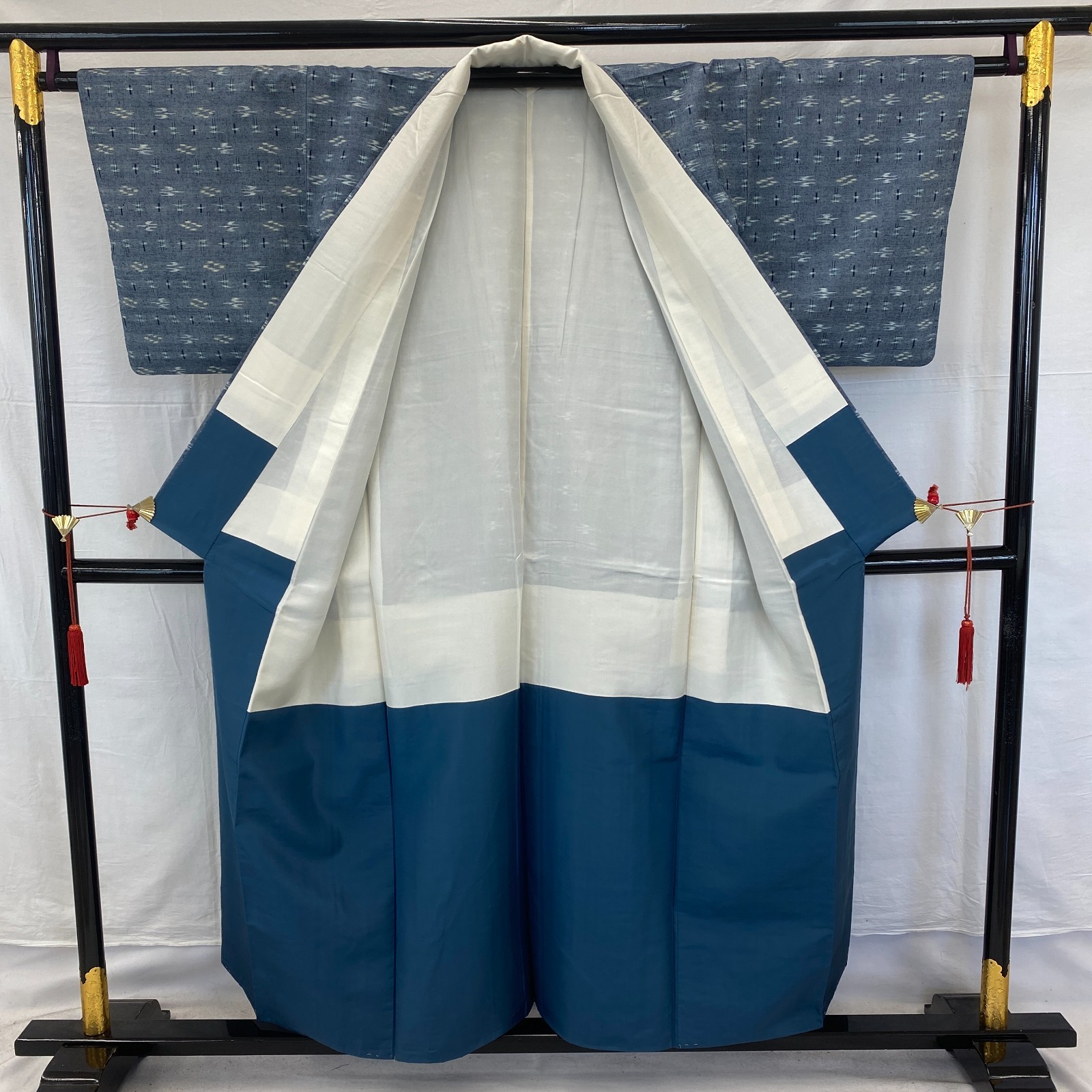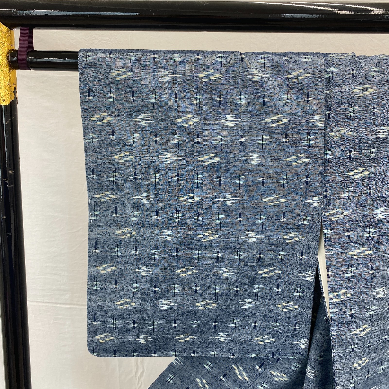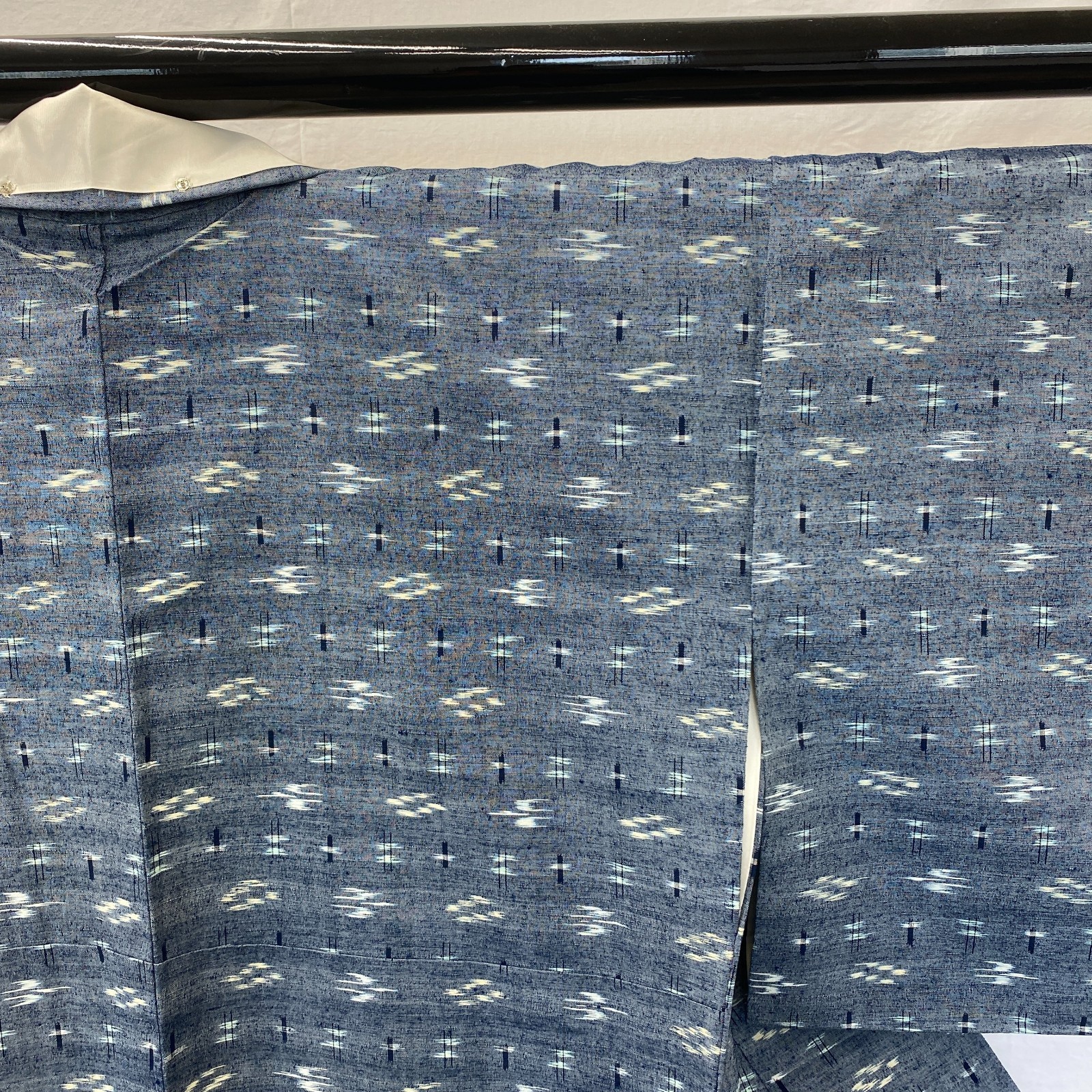 Japanese Vintage Kimono Silk Gray Tumugi Traditional Authentic Length 60 in