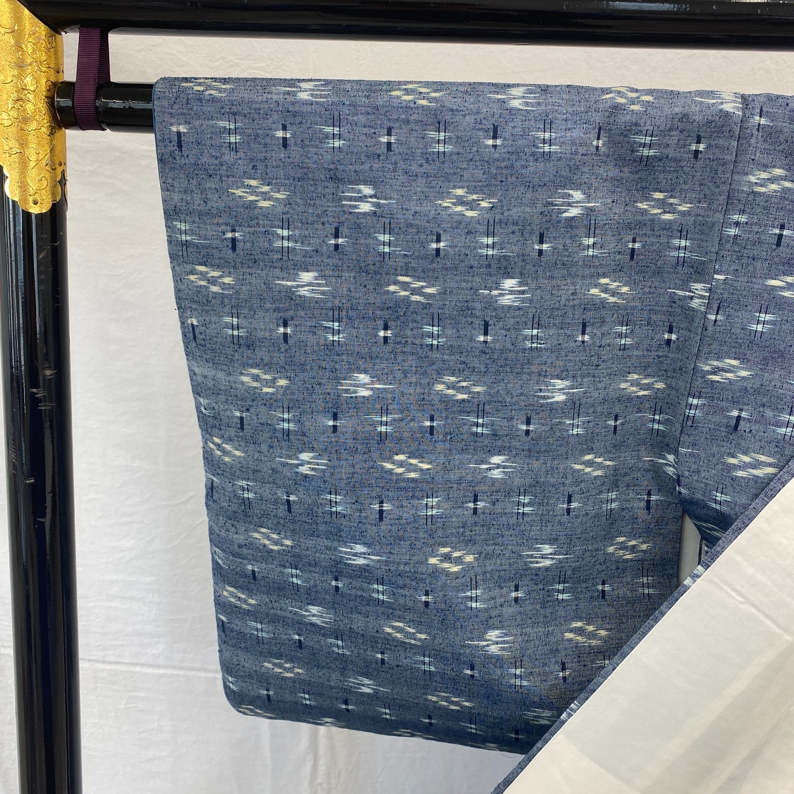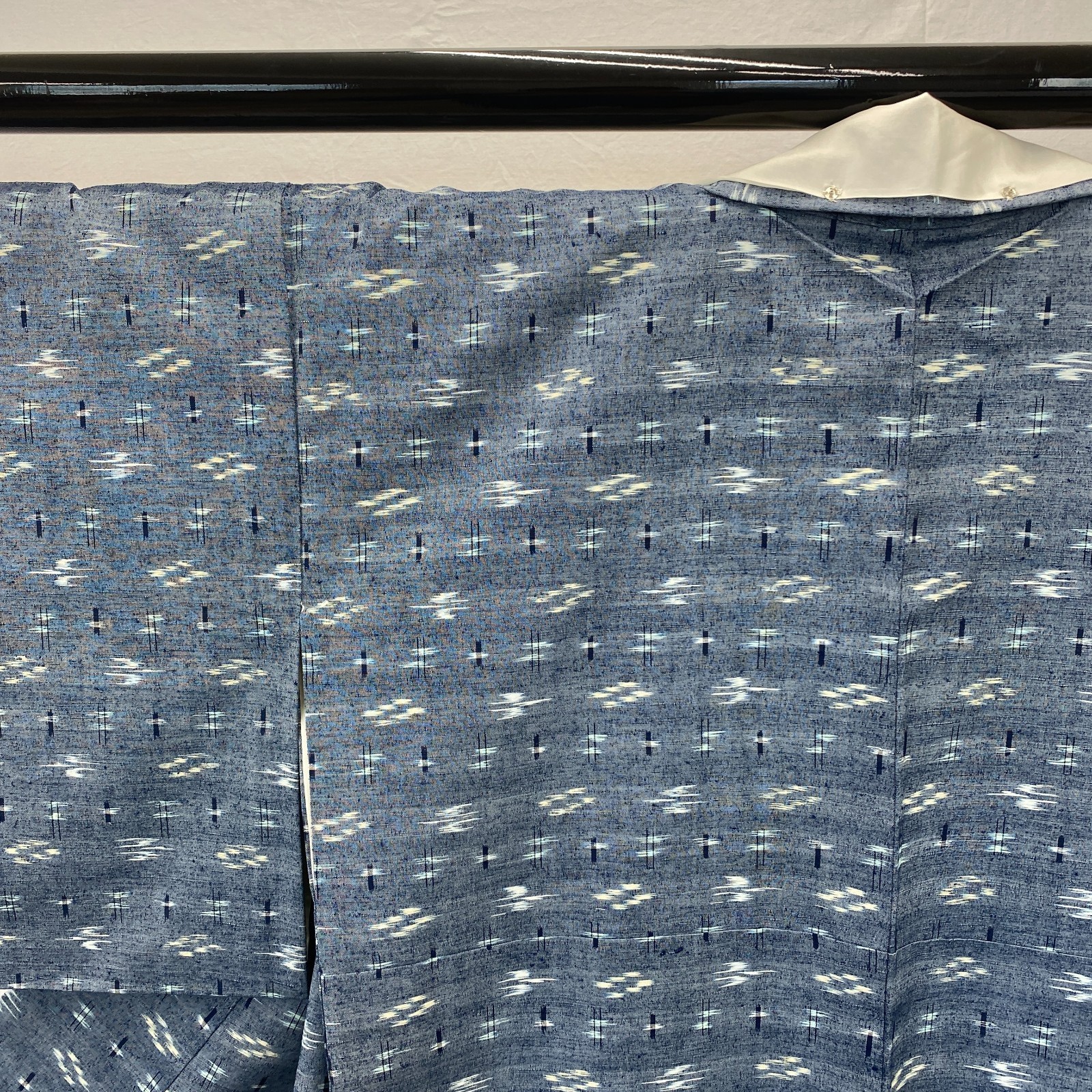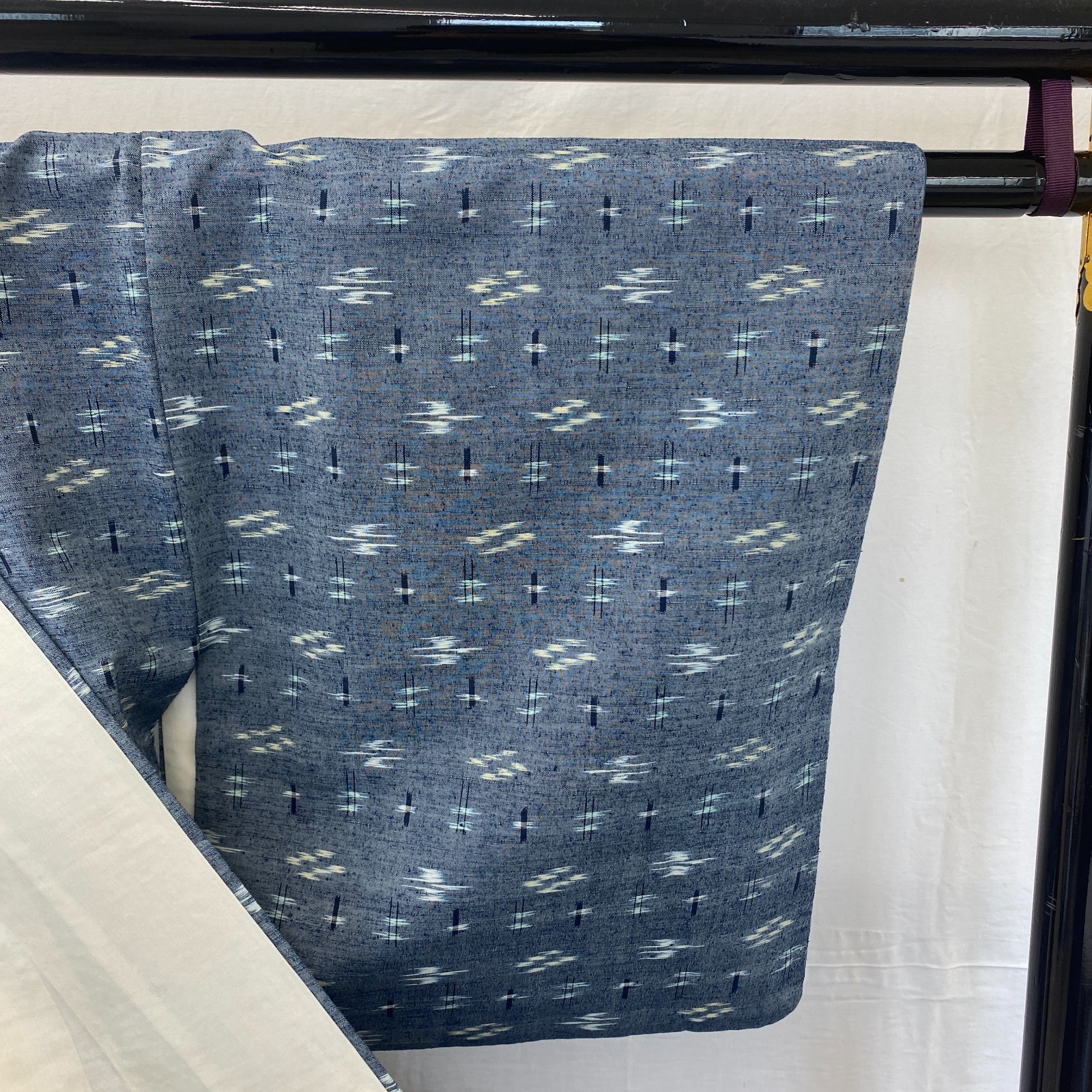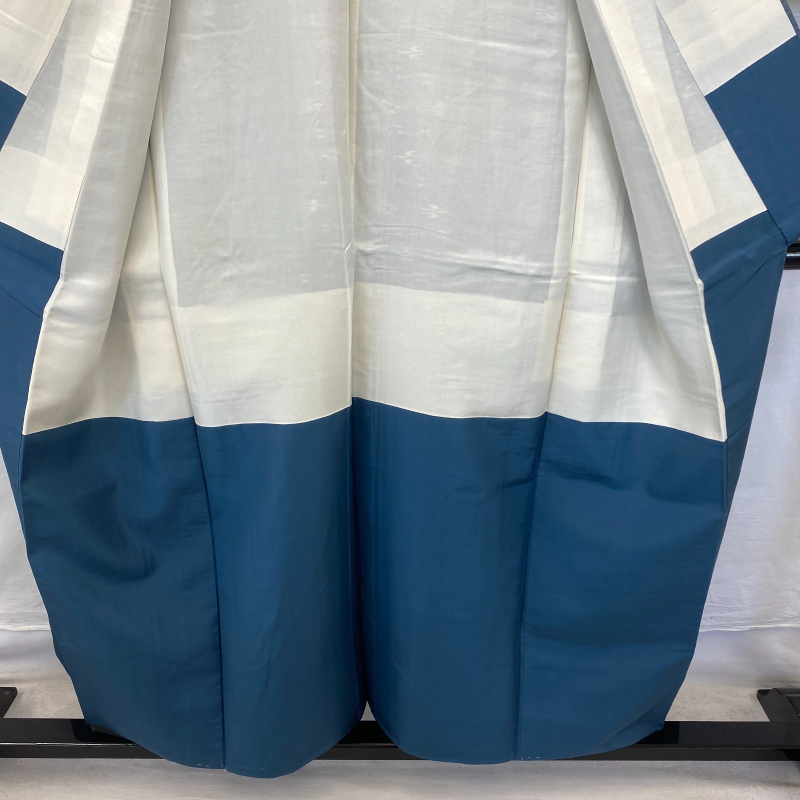Japanese Vintage Kimono Silk Gray Tumugi Traditional Authentic Length 60 in