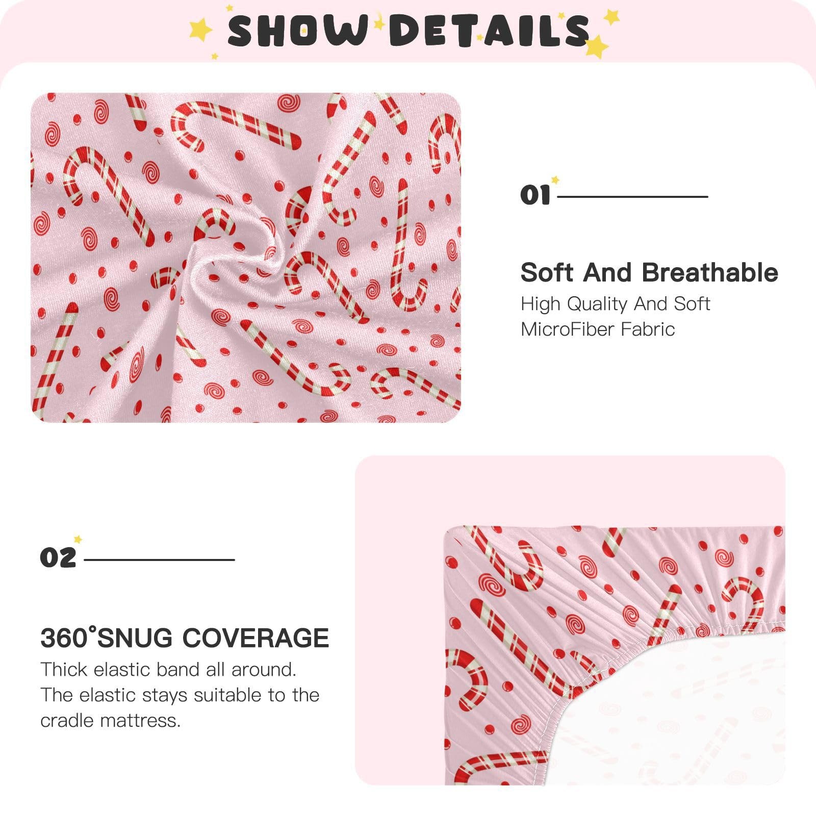 Candy Cane Christmas Pink Crib Sheets Soft Breathable Fitted Baby Crib Sheets...