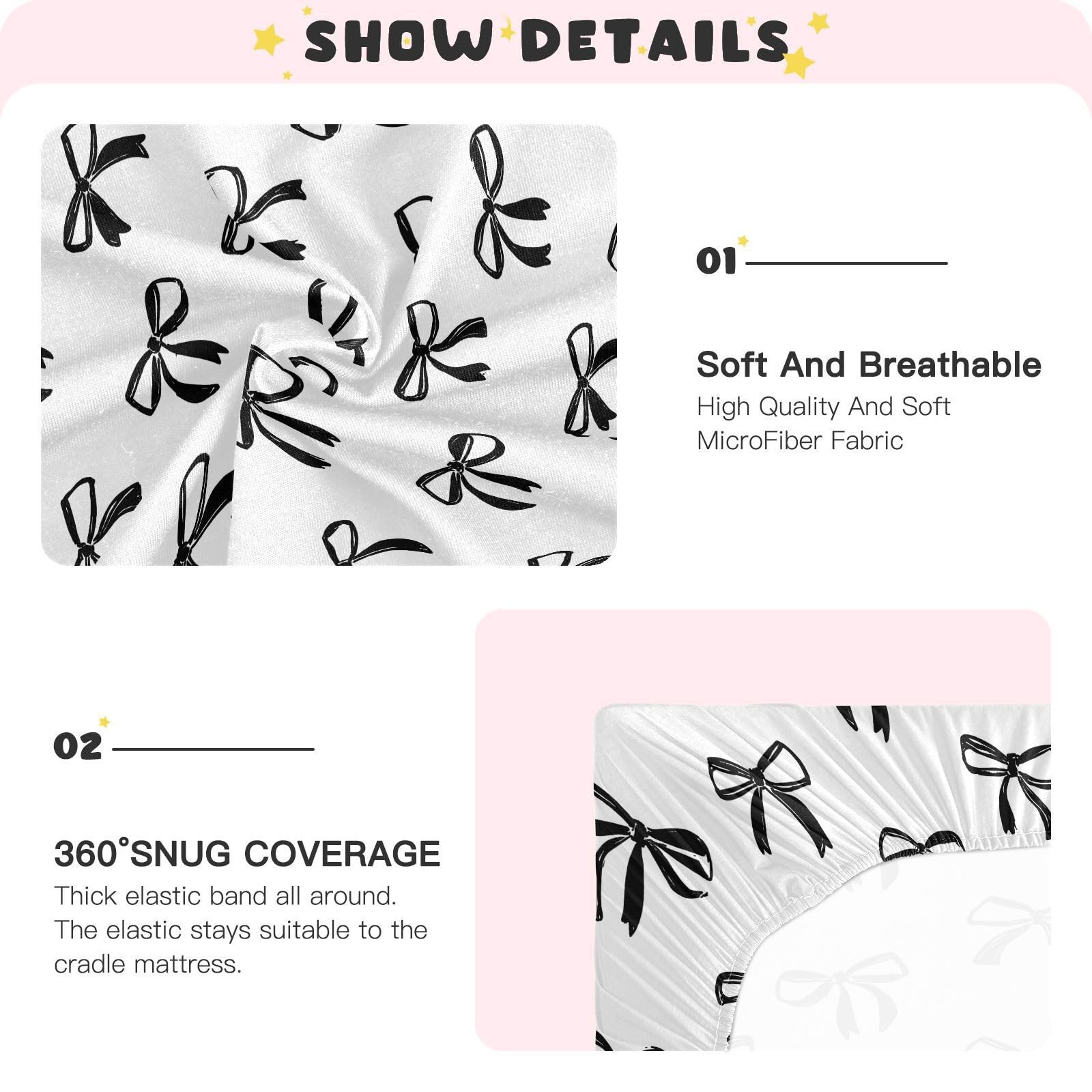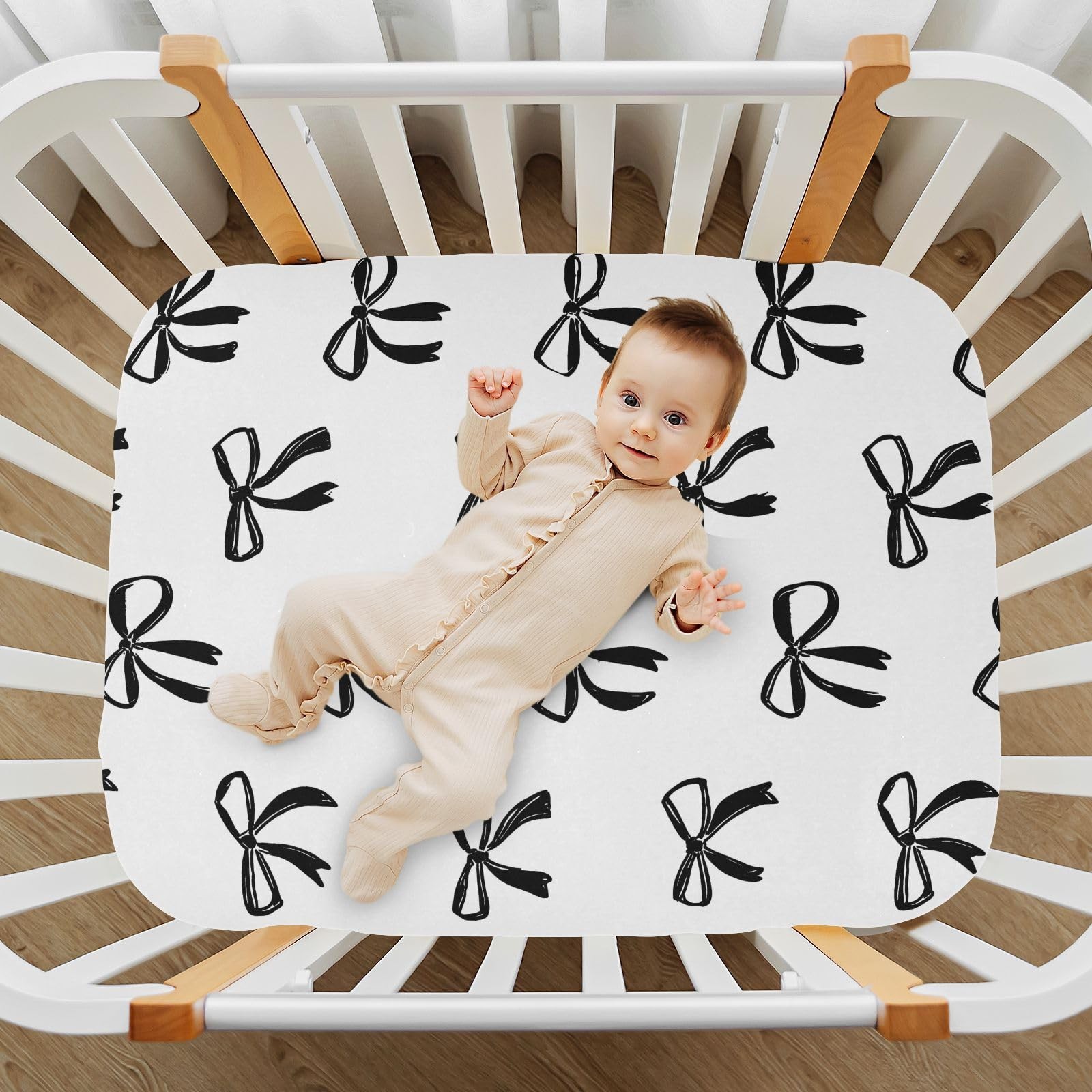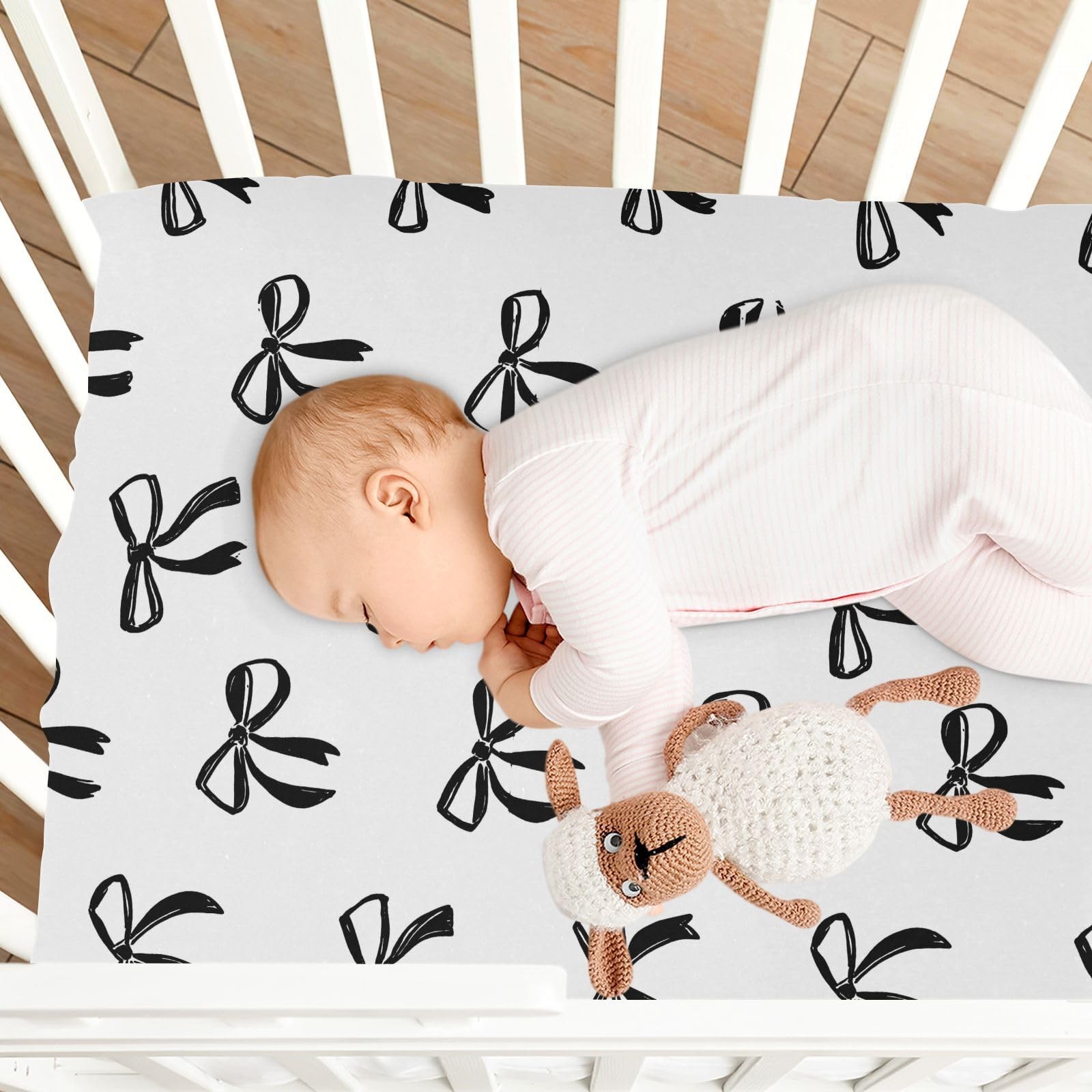 Crib Sheets for Boys Girl Black Bows Breathable Mini Crib Mattress Sheets Fit...