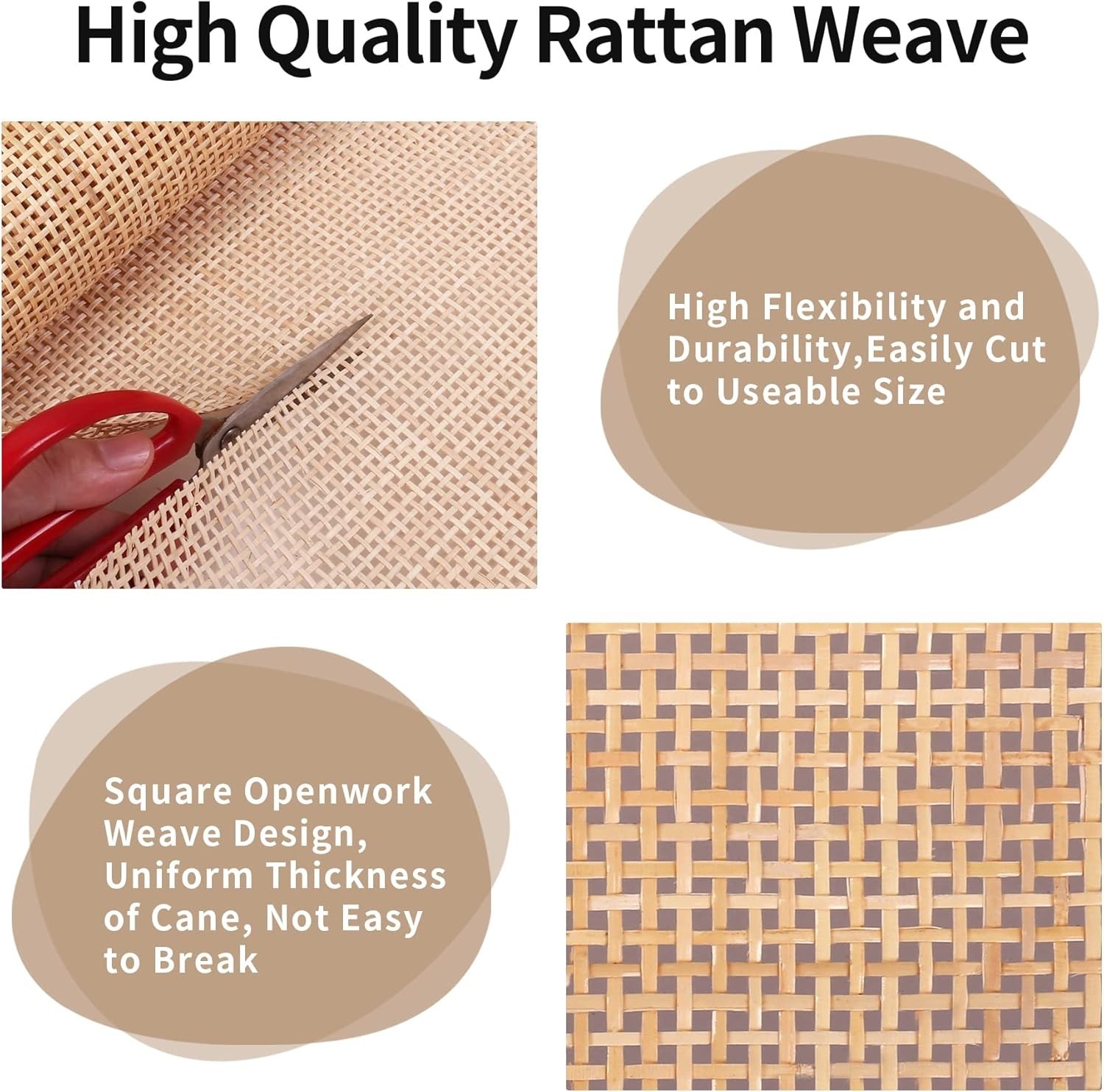 24 Wide Square Rattan Webbing 5ft Roll - Open Mesh for Chair Cabinet