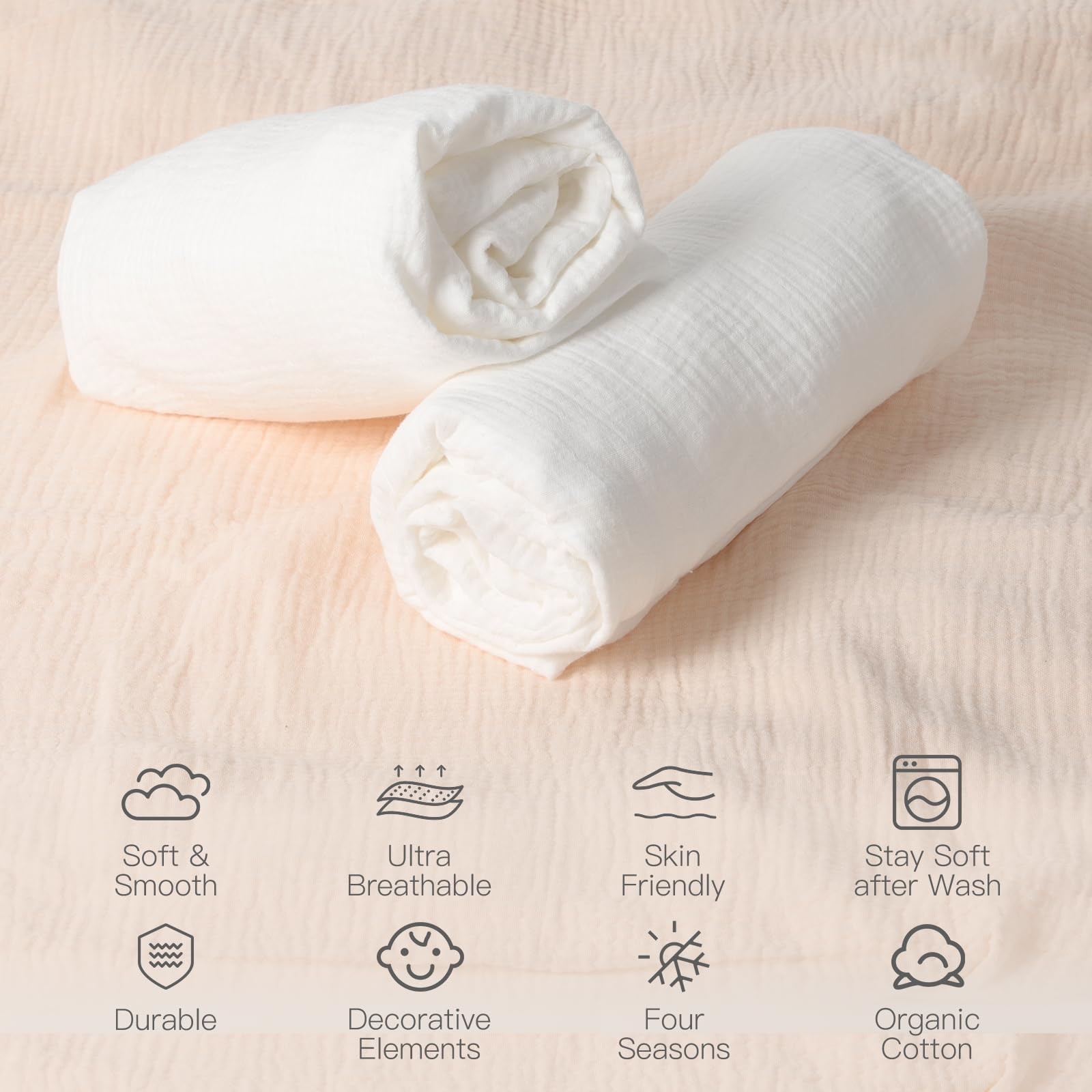 100 Organic Cotton Muslin Baby Fitted Crib Sheets 52x28 Inches 2 Pack White,...