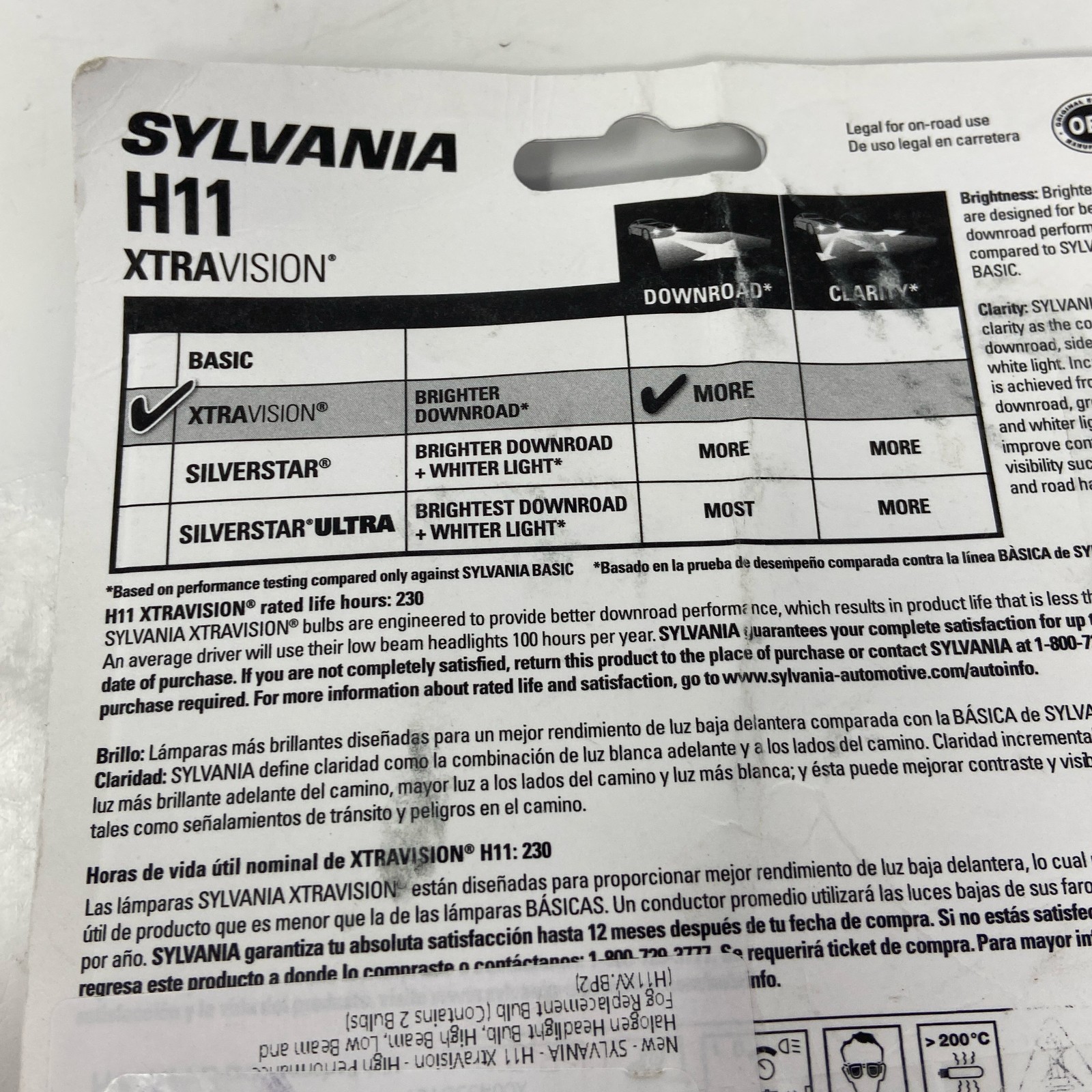 • SYLVANIA H11 XtraVision Halogen Headlight Bulbs 2-Pack - Clear 3200K, H11