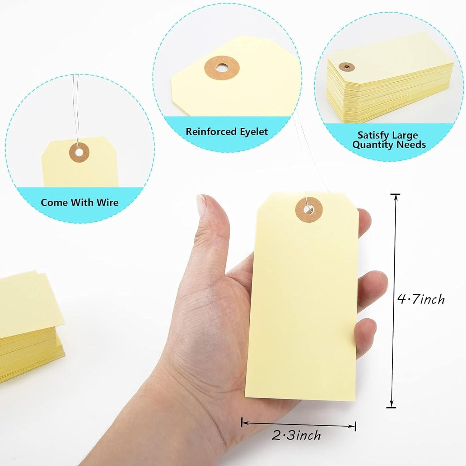 120 PCS Manila Tags with Wire, 4 3/4 x 2 3/8 Heavyweight Shipping Invento...