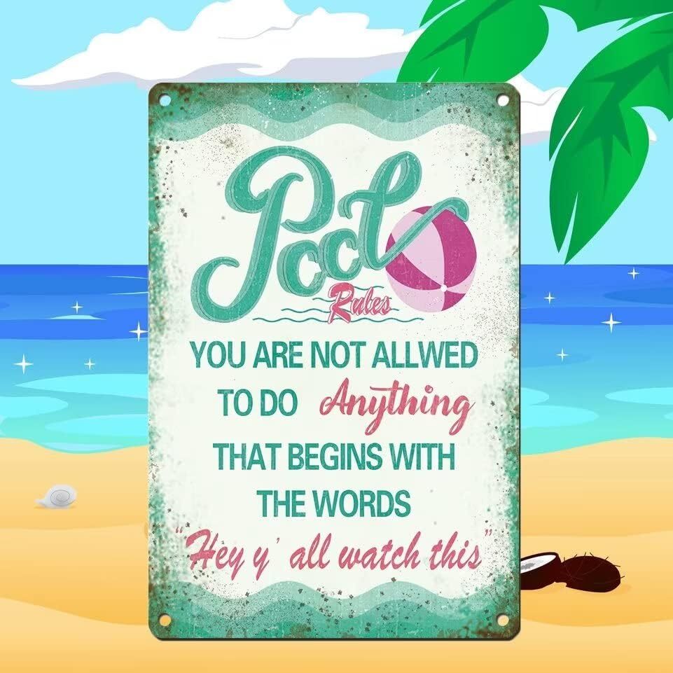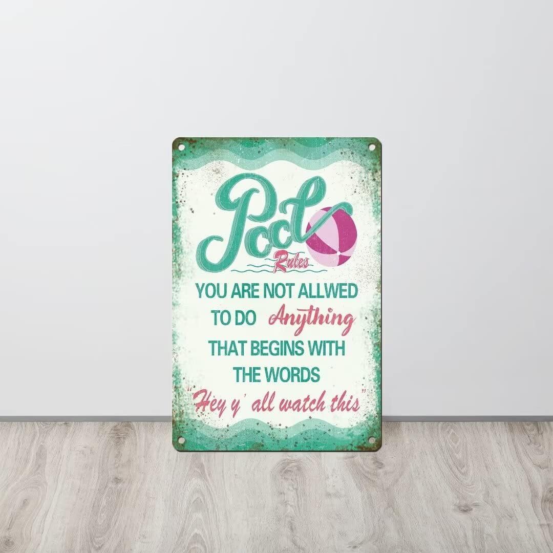 Pool Rules Signs: You Will Receive A Vintage Metal Tin Sign For Party Decoration Or