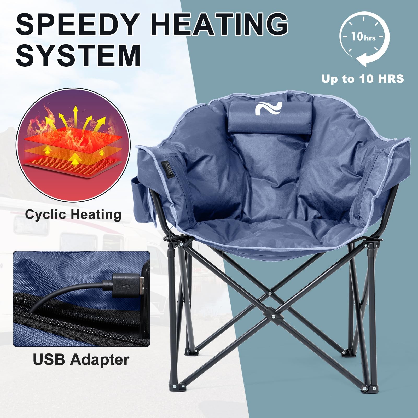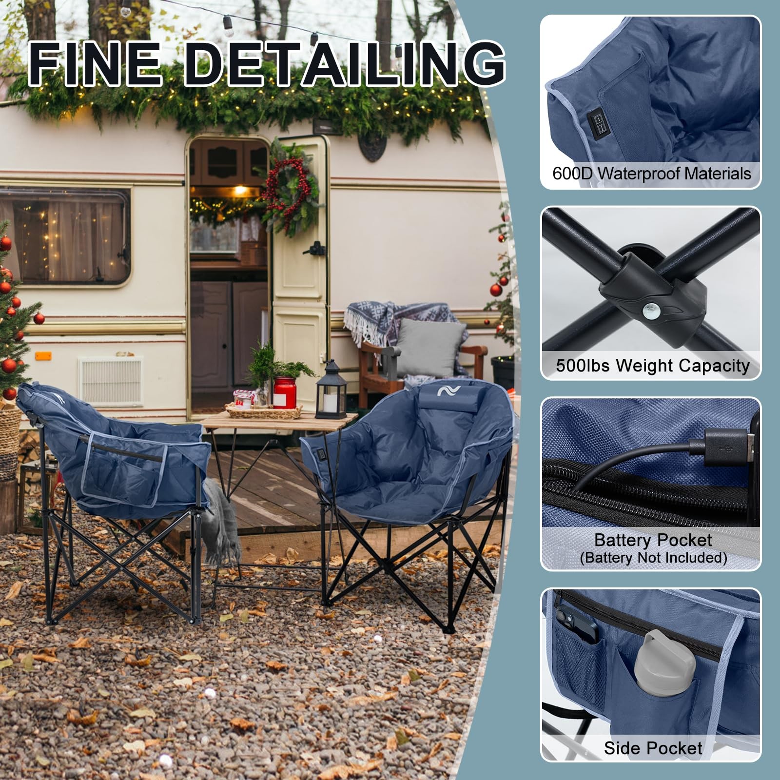 Heated Camping Chair, Portable Heated Camping Chairs Outdoor, Padded Oversized