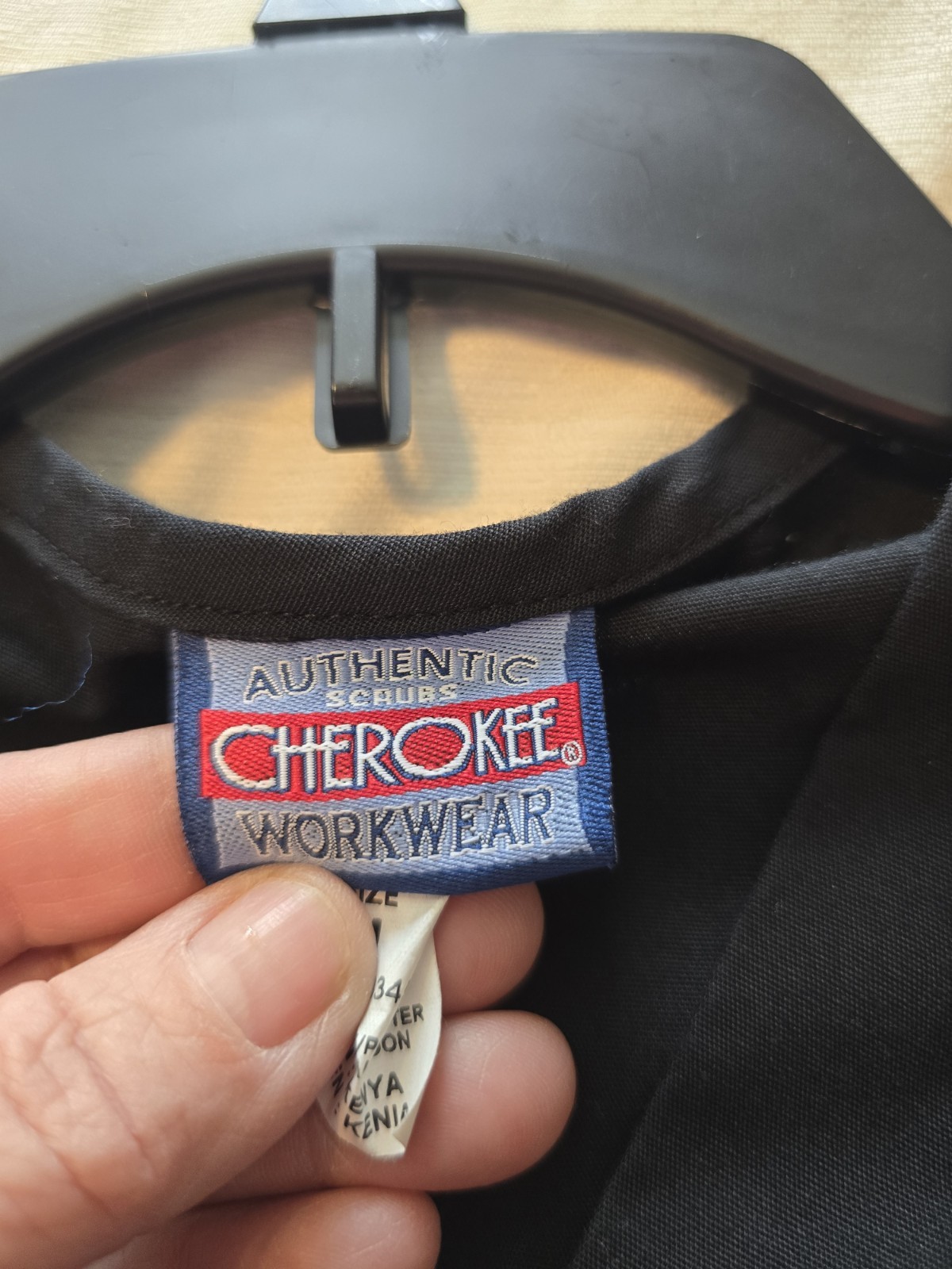 как выглядит Lot Of 2 Sz M Black Scrub Tops Shirts Vital Threads Cherokee Guc фото