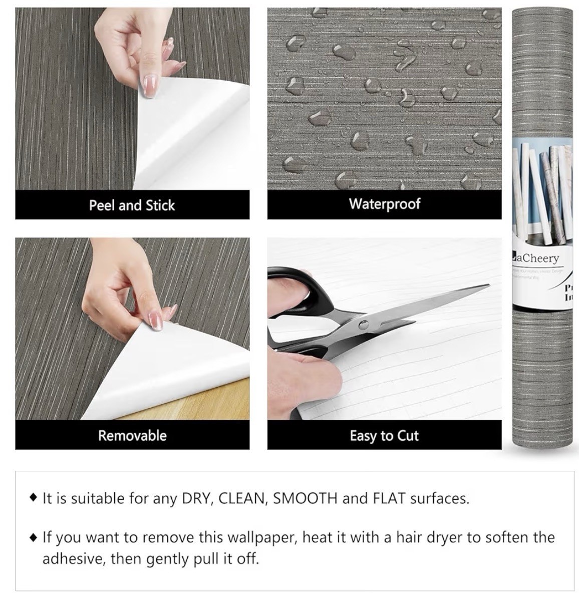 LaCheery 160x24 Inch Grey Textured Wallpaper for Bathroom