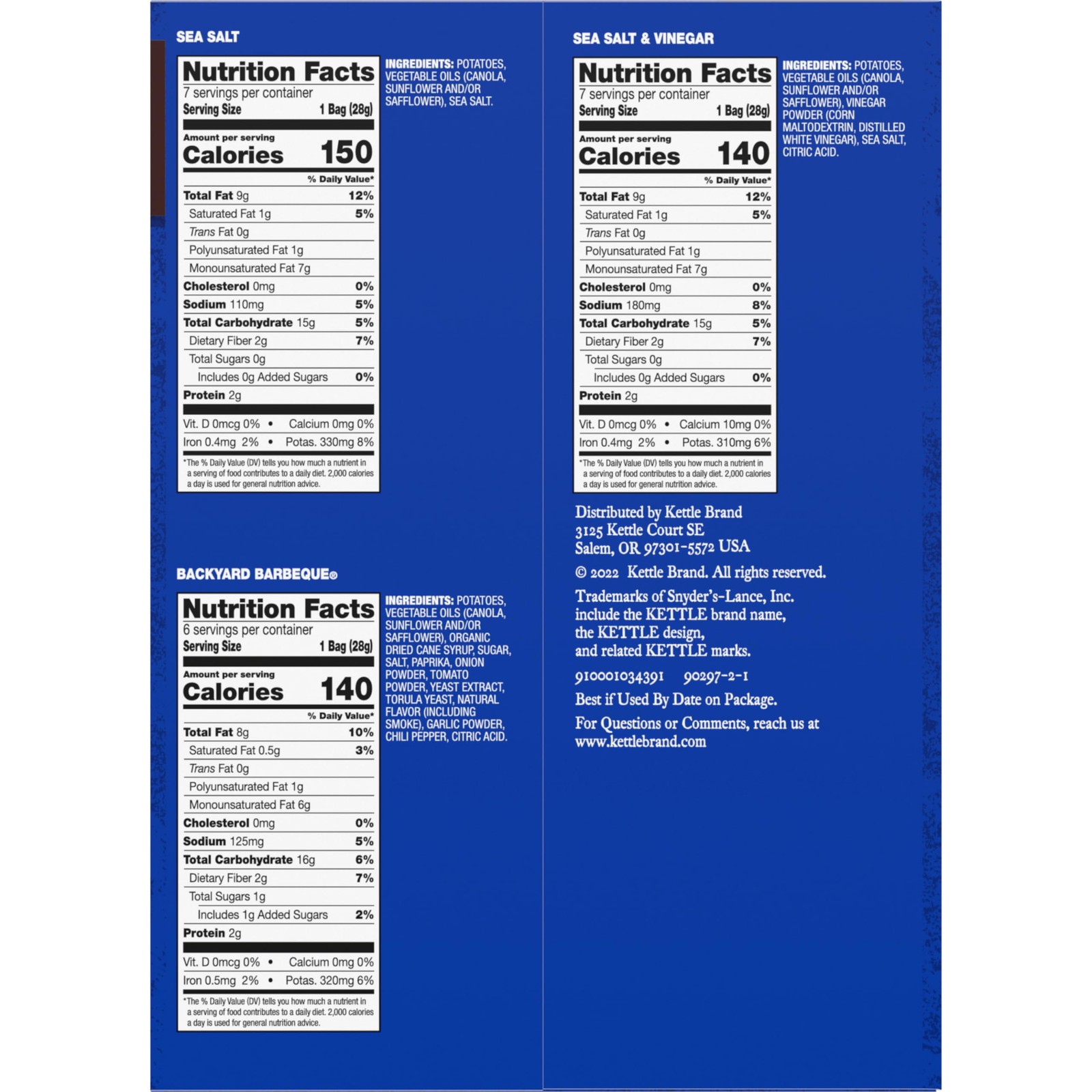 Kettle Brand Potato Chips Variety Pack, 1 Oz, 20 Ct