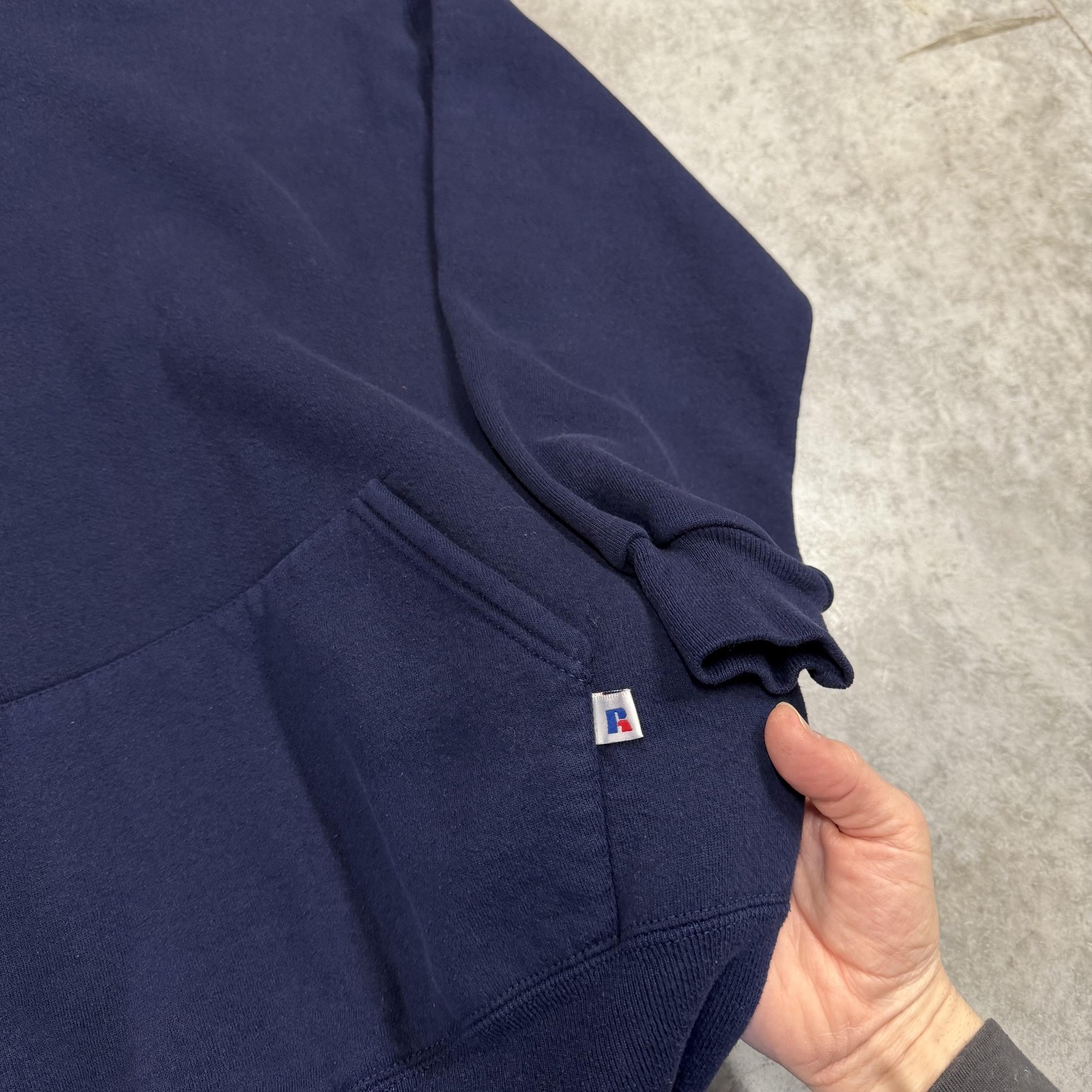 как выглядит Vintage Russell Athletic Hoodie Sweatshirt Mens XL Blue Fleece Blank USA 90s фото
