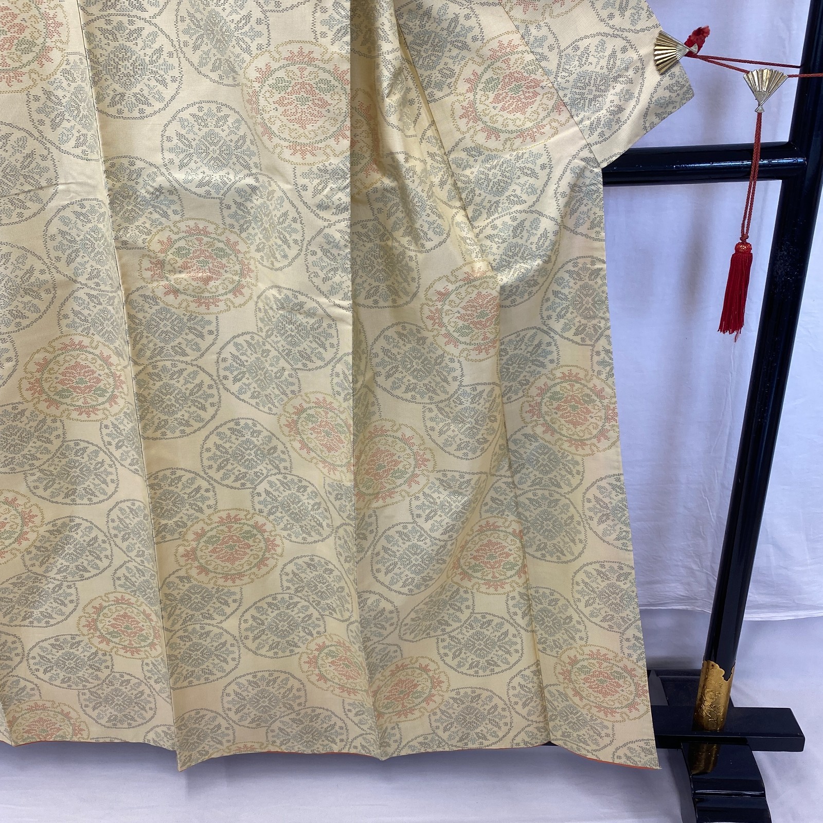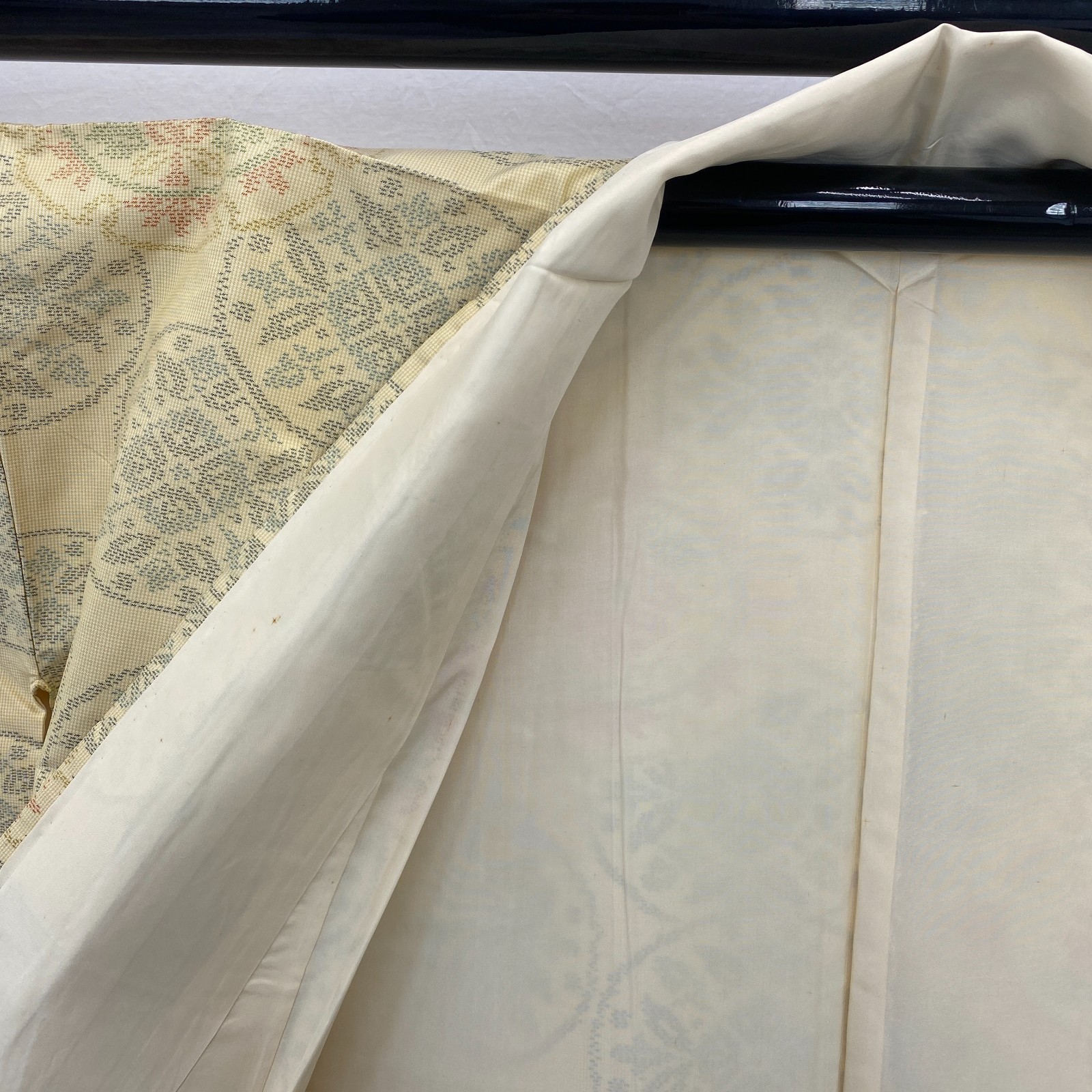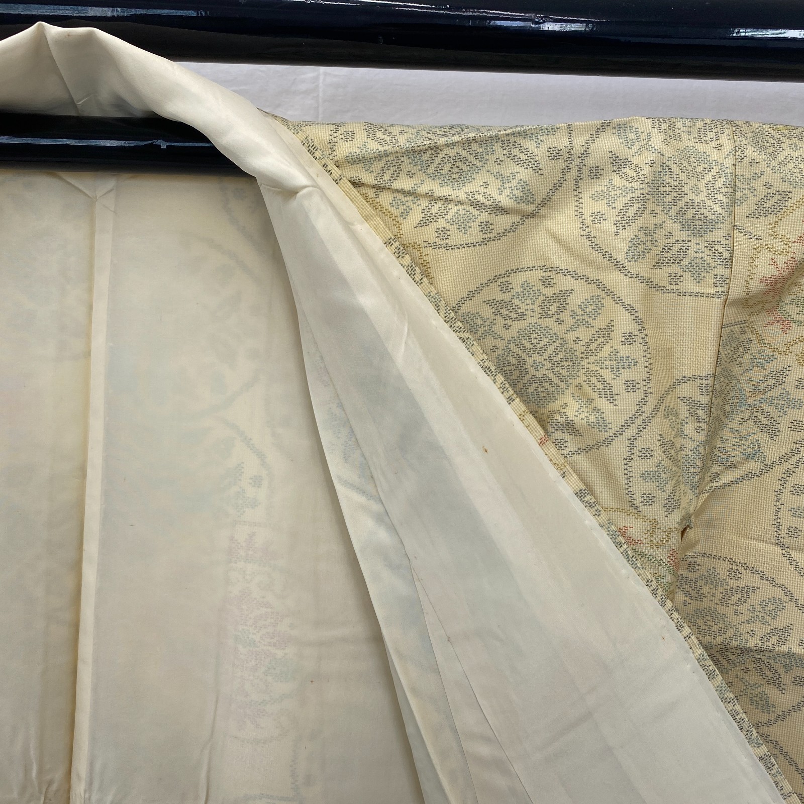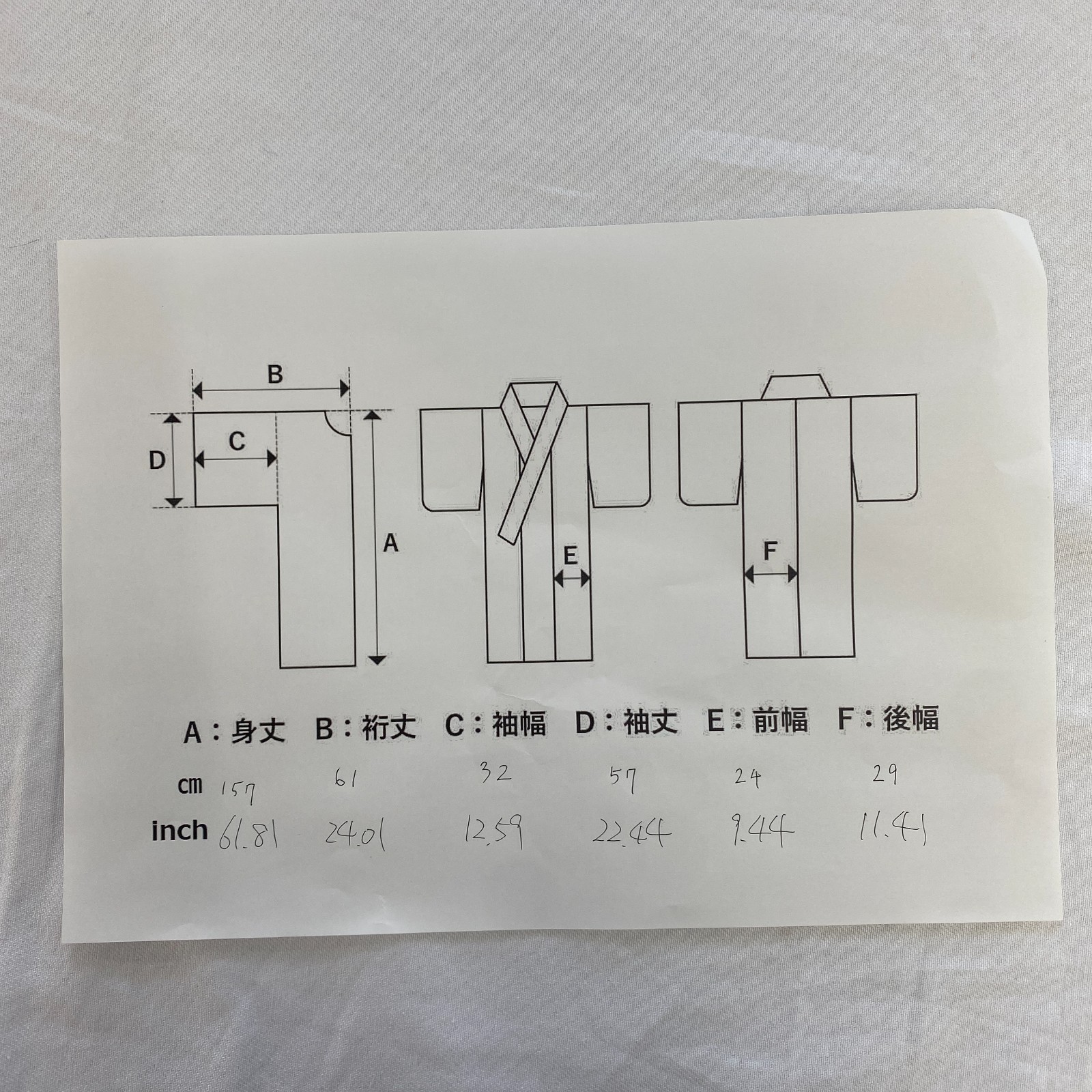 Japanese Vintage Kimono Polyester White Traditional Authentic Length 61 in