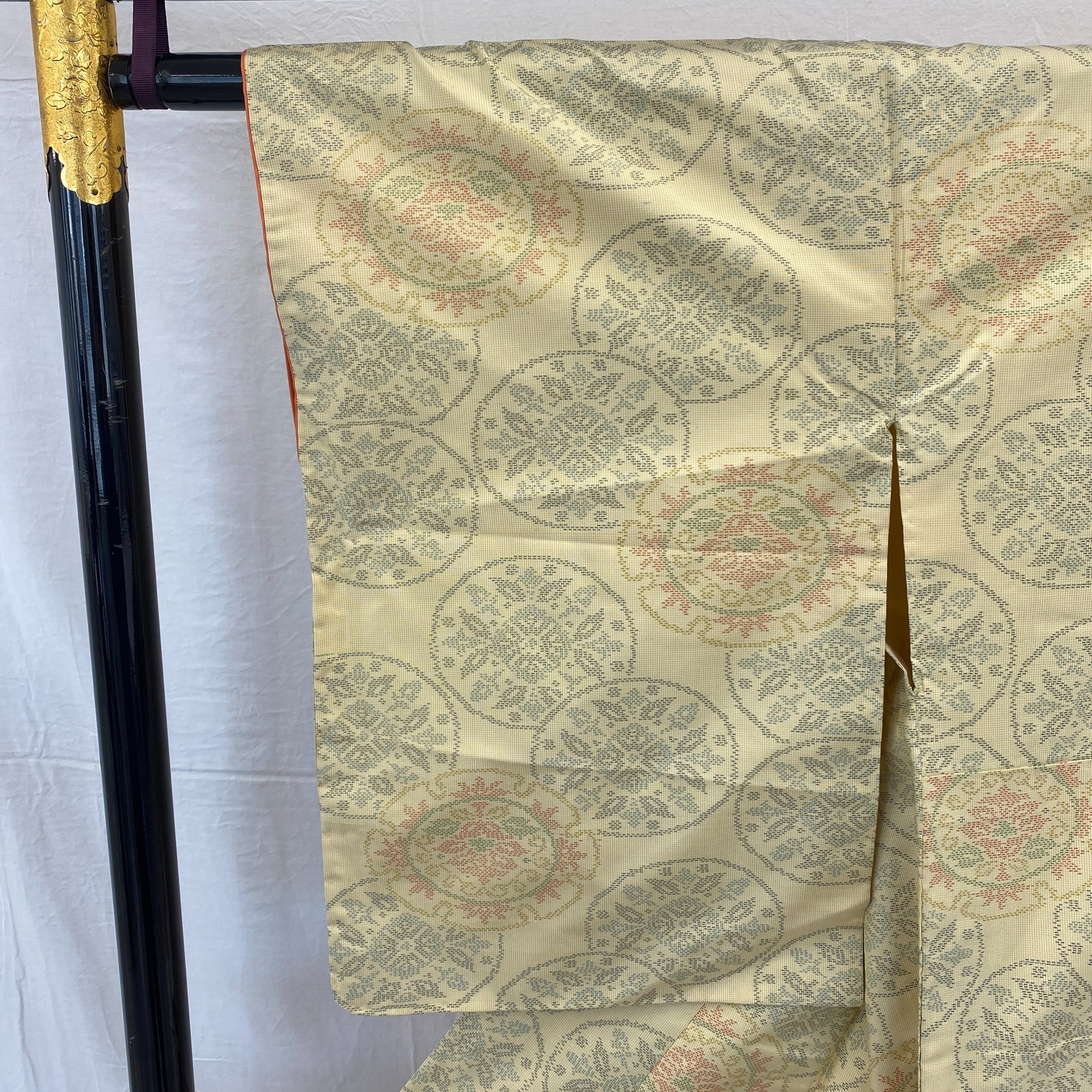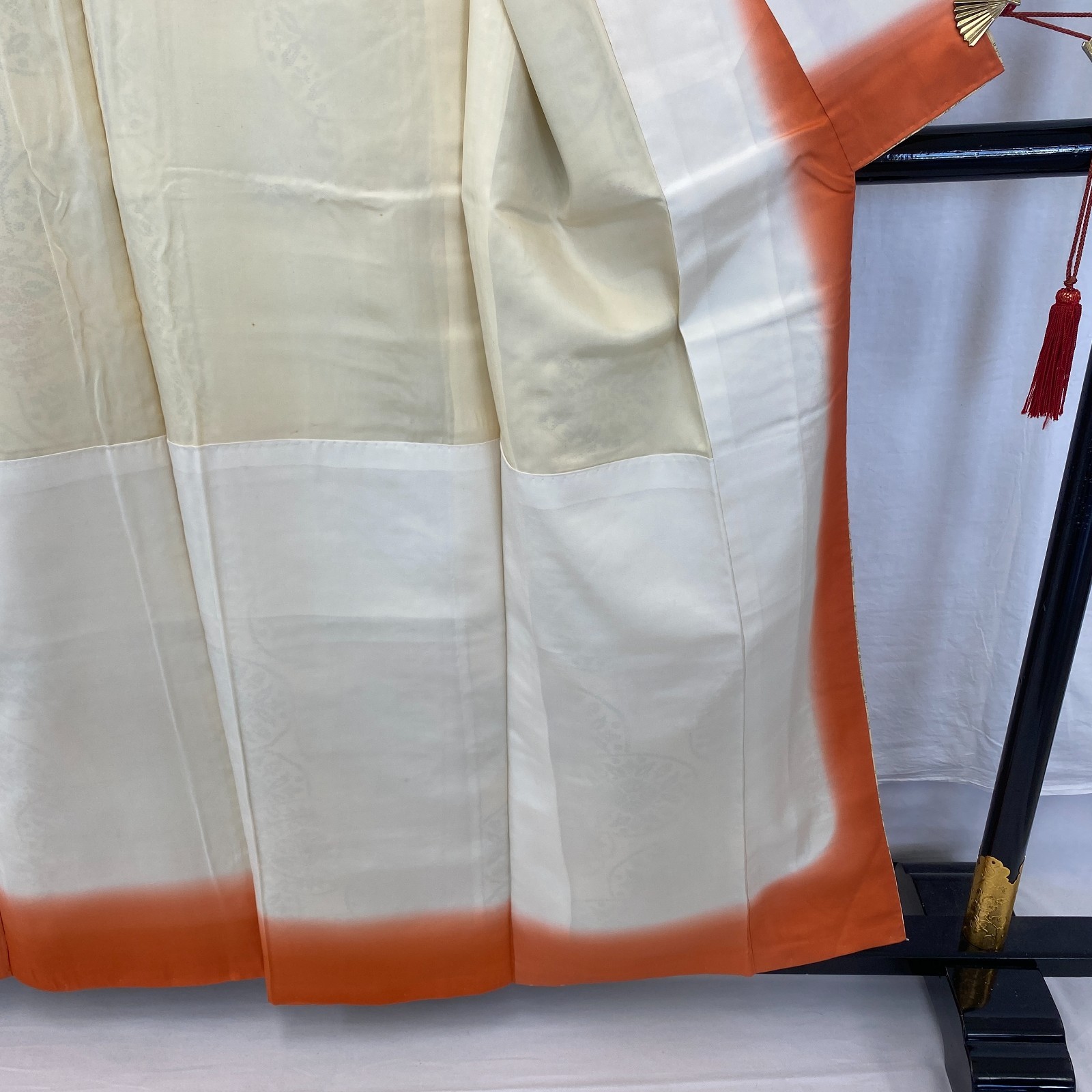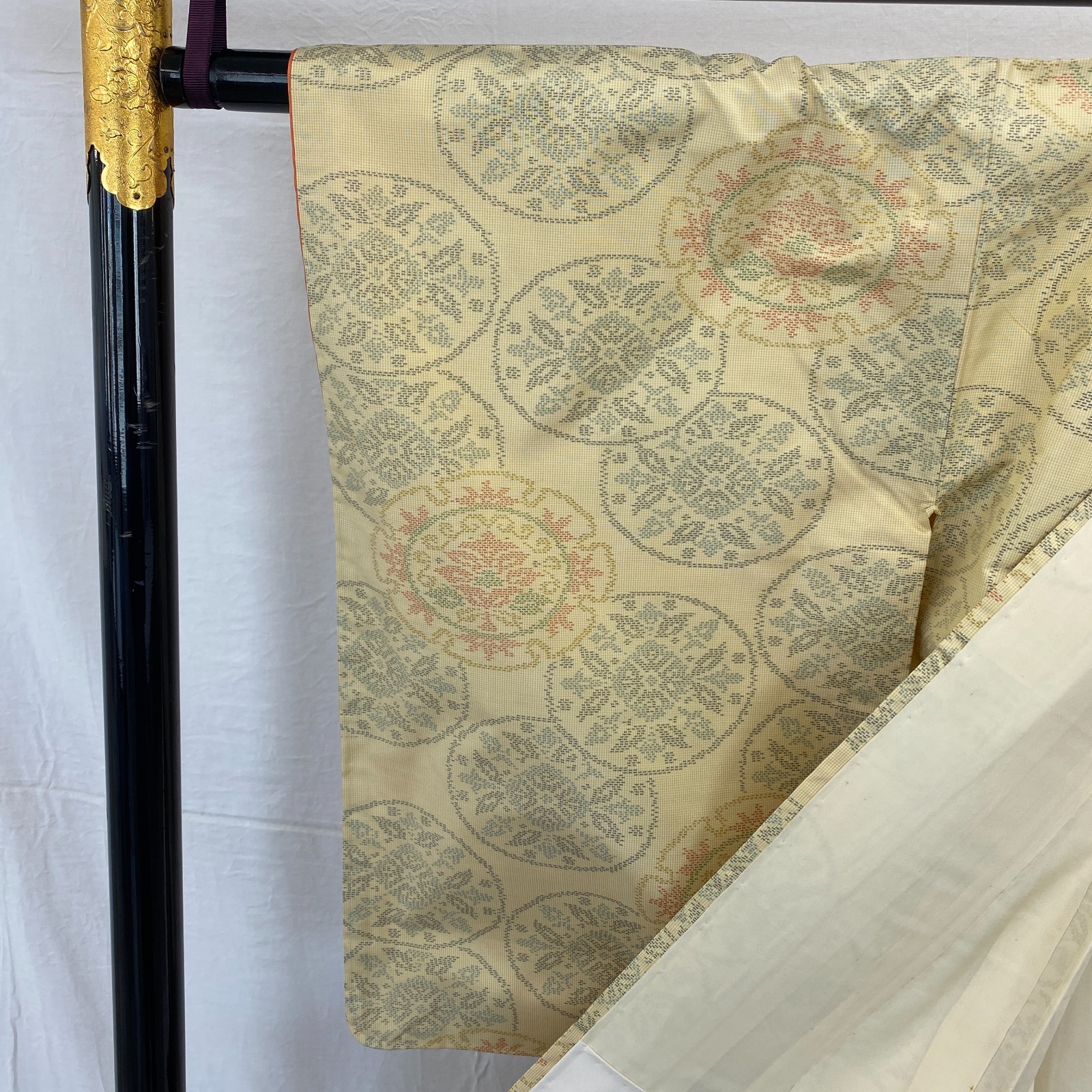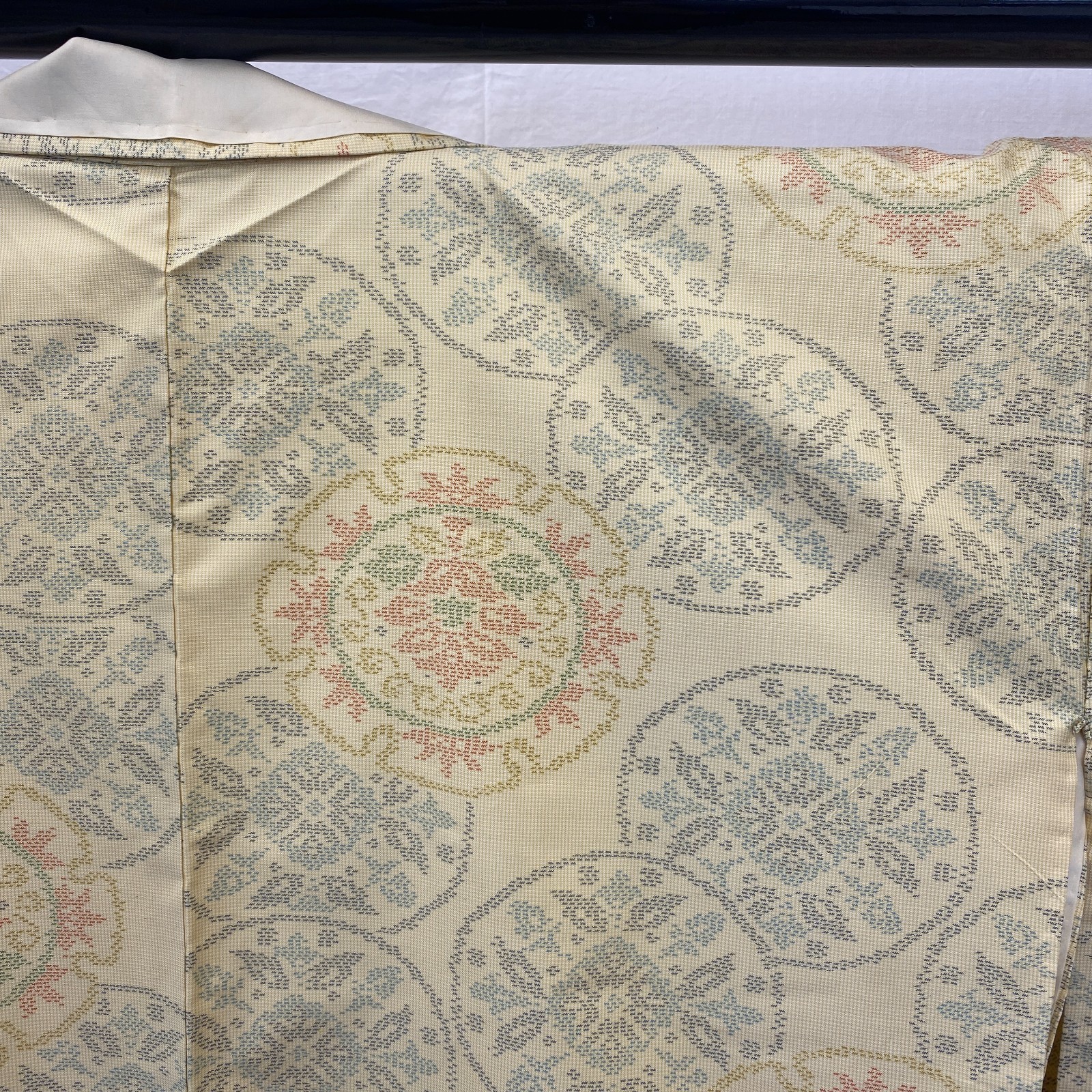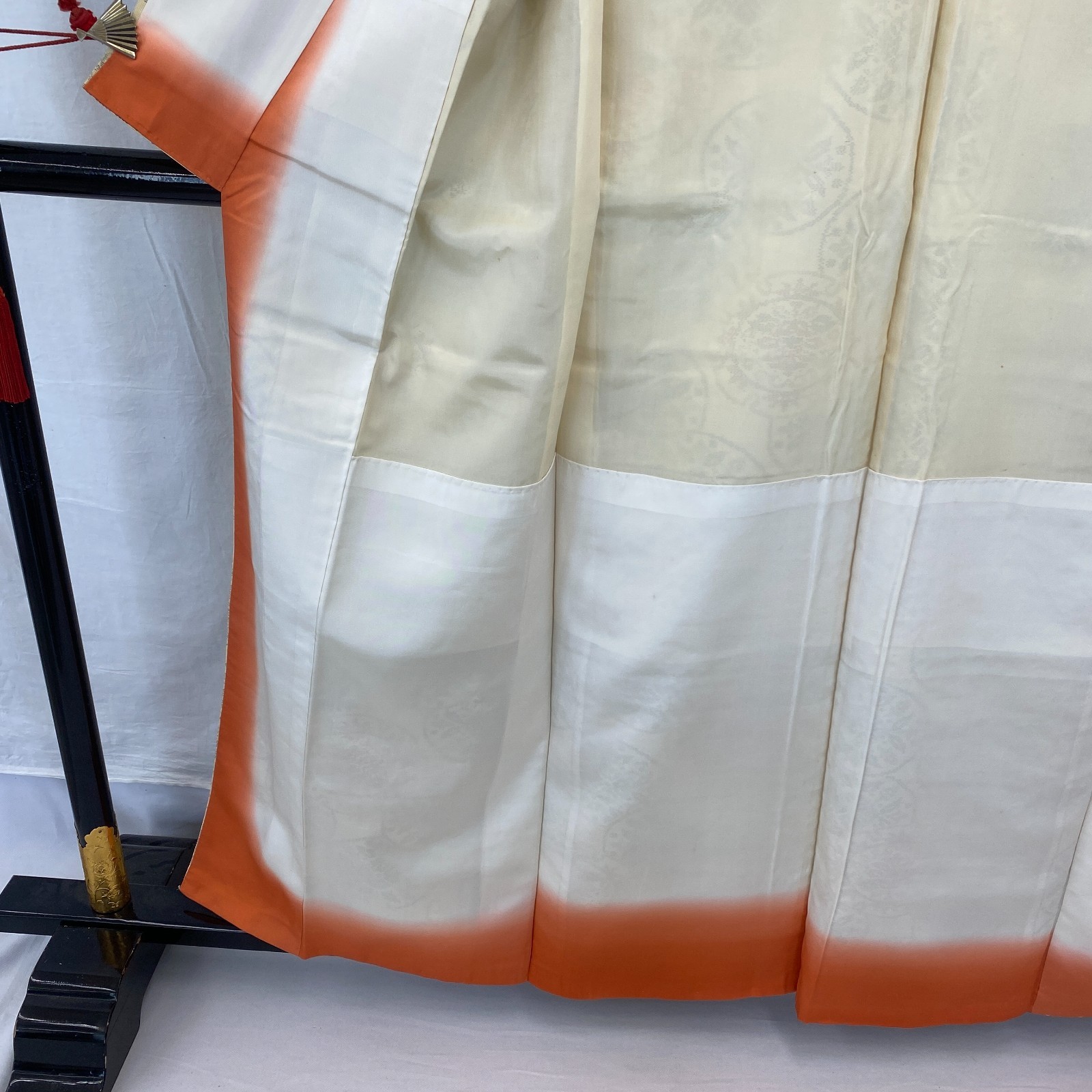 Japanese Vintage Kimono Polyester White Traditional Authentic Length 61 in
