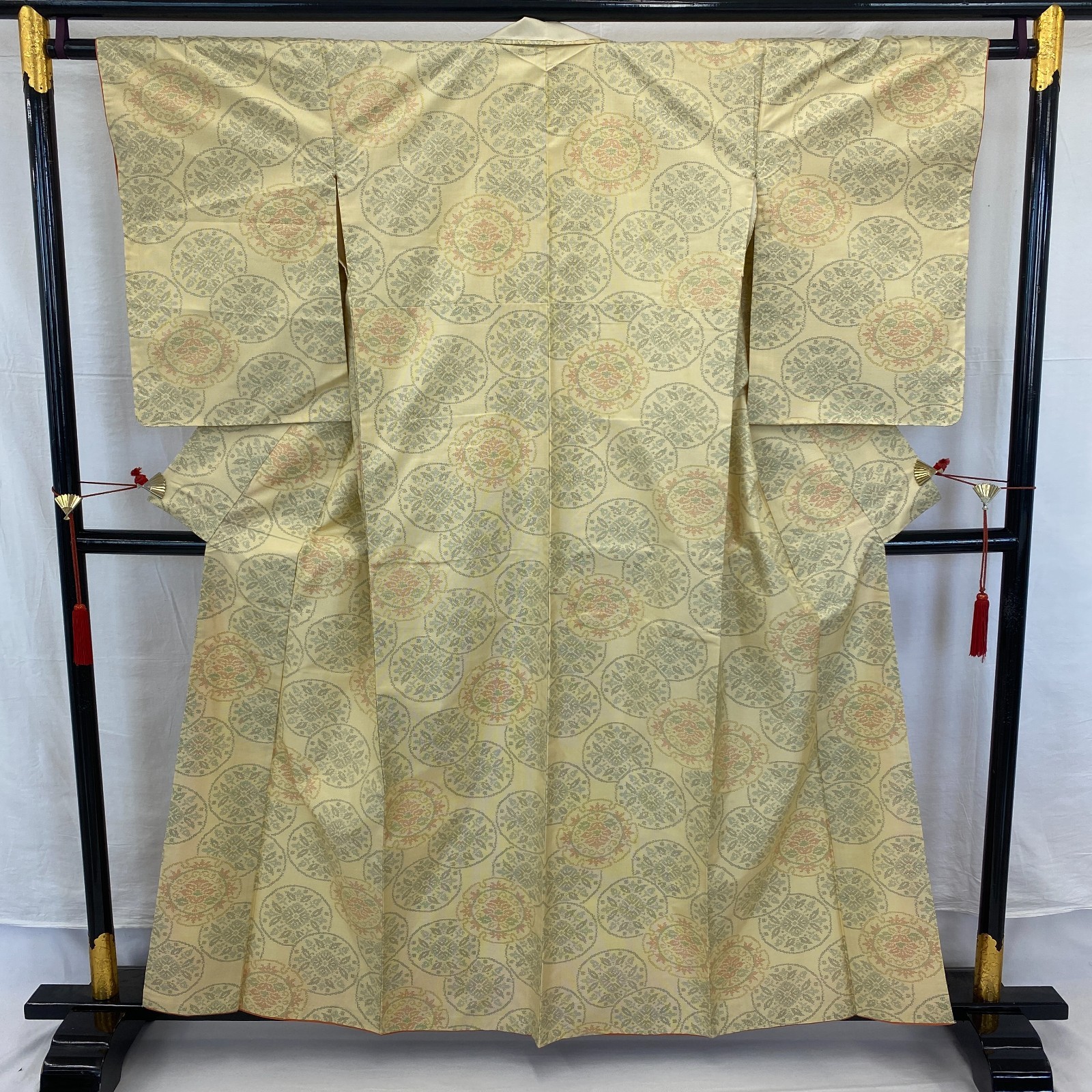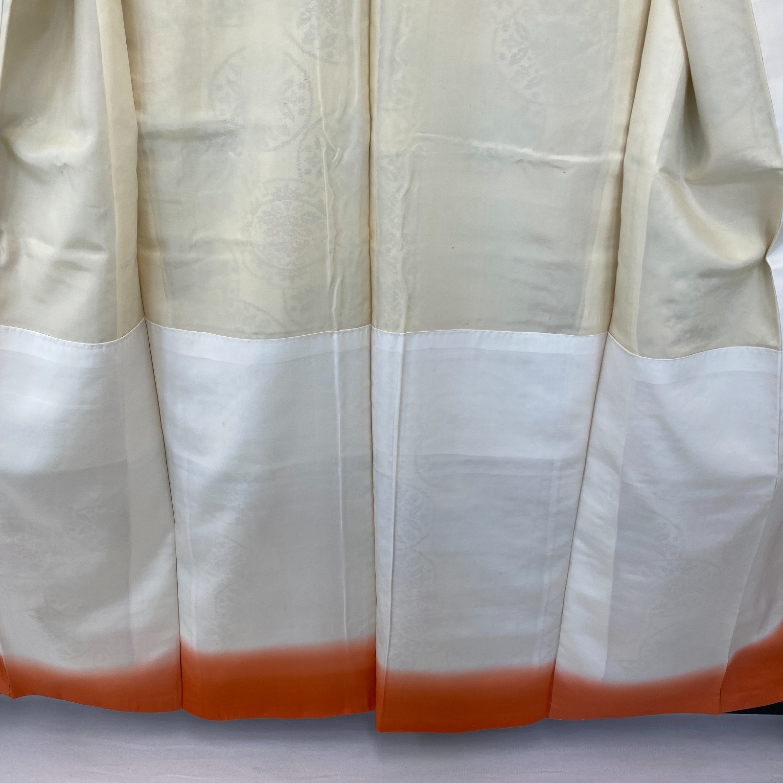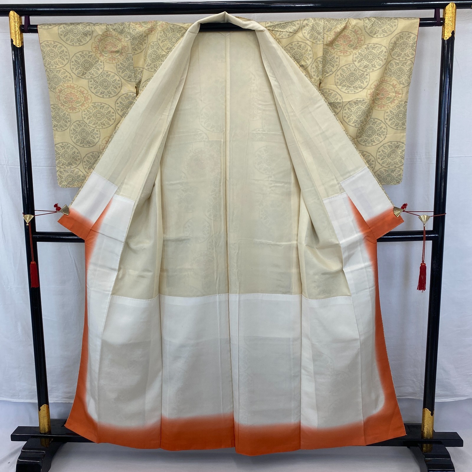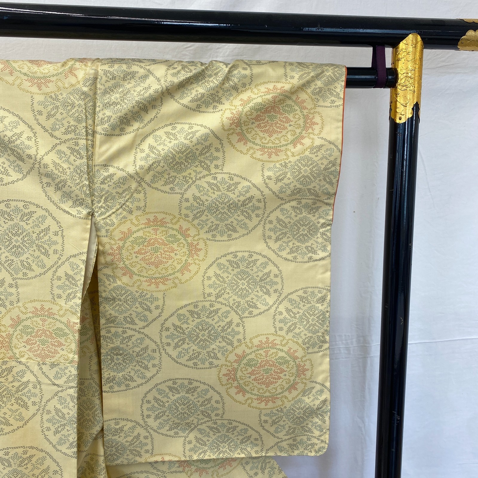 Japanese Vintage Kimono Polyester White Traditional Authentic Length 61 in